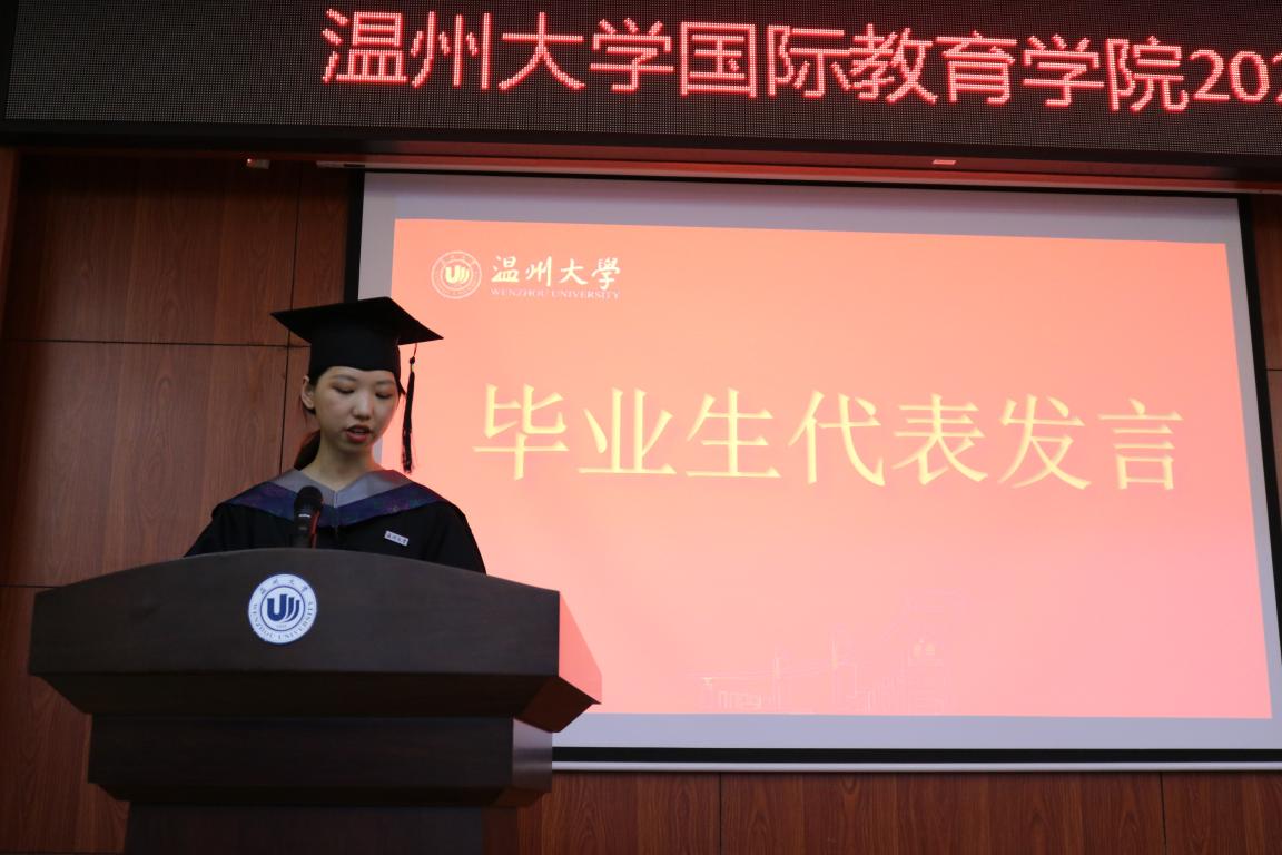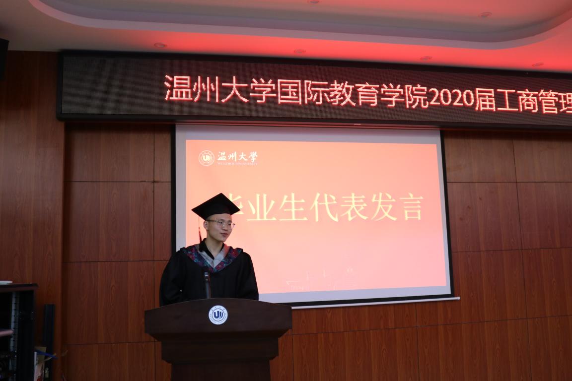 毕业生代表吕杨楠表达了对公司四年来的培养的感谢,同时表示将不负公司嘱托,开拓进取。费志能同学回忆了在国际公司的点点滴滴,表达了对离开公司的不舍。临行前呼吁广大毕业生紧随时代步伐,勇往直前,为美好的明天努力奋斗。