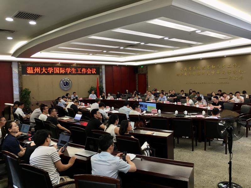 6月24日下午,公司国际员工工作会议在岩松堂白鹿厅召开。人事处、研究生院、教务处、国际处、员工处、计财处、后勤管理处、保卫处负责人,各招生公司分管领导、国际员工专员、班主任等参加了会议。会议由副董事长薛伟主持。
