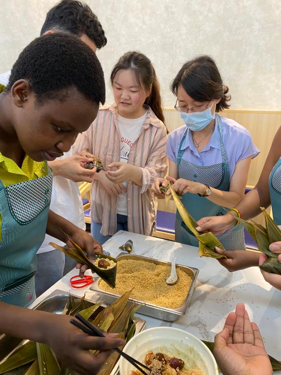 在传统端午节来临之际,国际公司(留管部)于6月24日下午组织来自尼日利亚、巴基斯坦、加纳等国的20余名职工前往怡口乐餐厅学习包粽子,体验端午传统佳节。