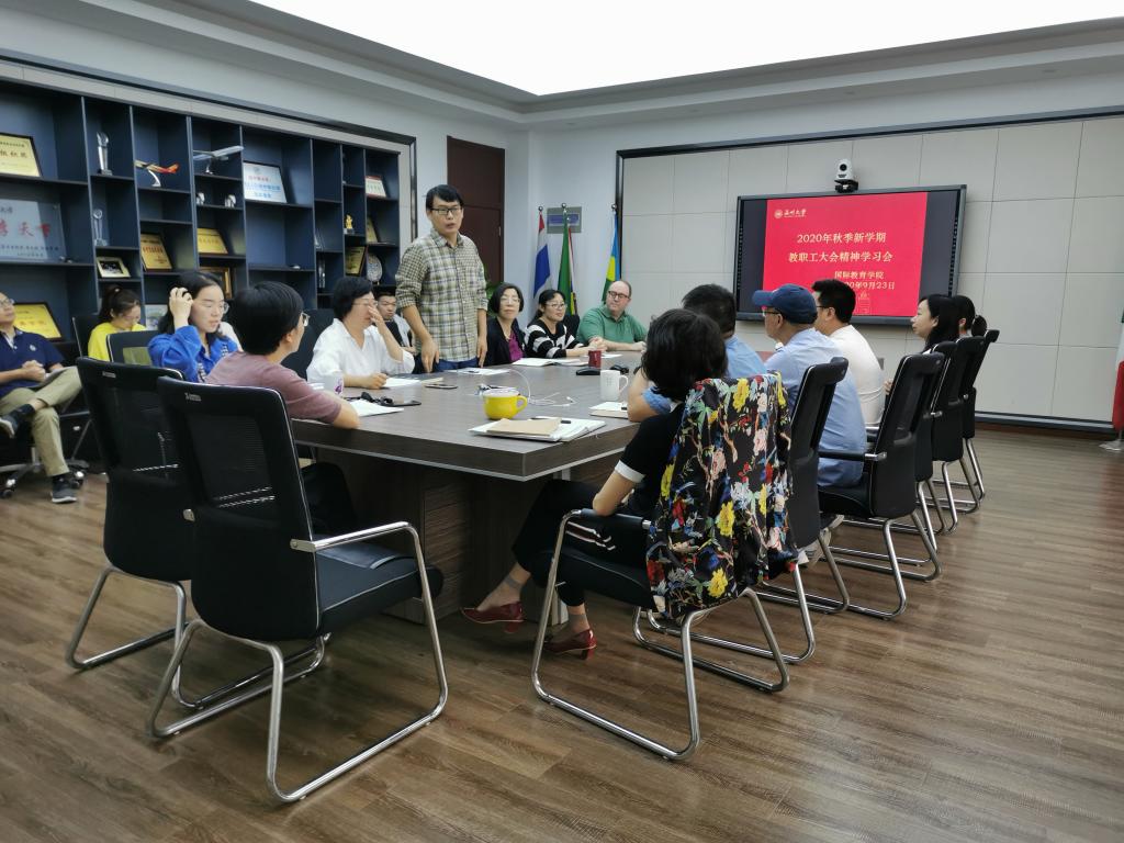 9月23日,公司全体教职工在国际楼311会议室深入学习2020年秋季新学期教职工大会精神,大会学习了谢树华书记的《扛起发展新使命,奋力谱写新篇章》以及赵敏董事长的《坚定信心、乘势而上,以“重要窗口”标准奋力推进高质量发展》等相关文件,与会的教师们踊跃发言,积极讨论,以下是部分教师的发言: