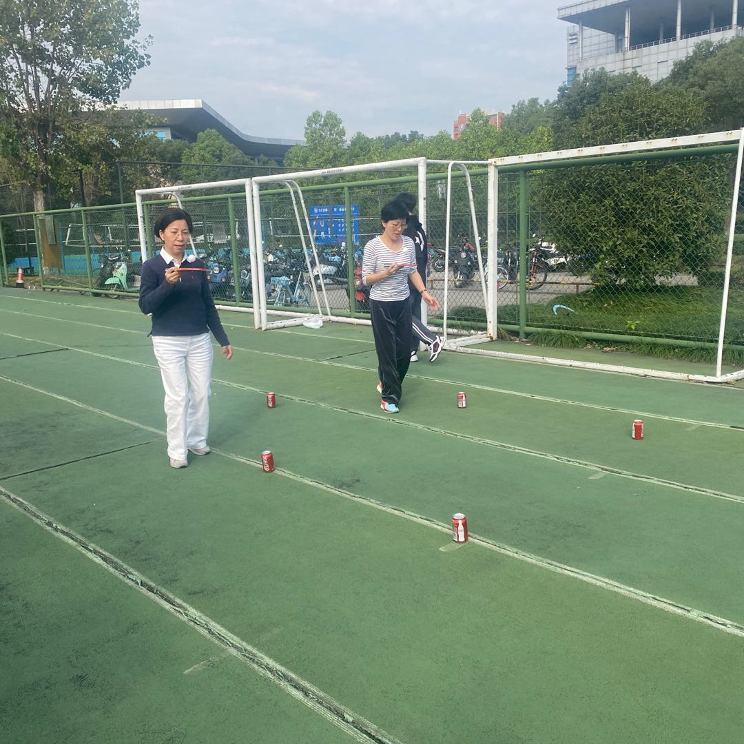 趣味运动会分四个项目:趾压板木头人,摸石过河,趣味前进射球赛和毛毛虫竞速。其中摸石过河和毛毛虫竞速最为有趣,师生们两人一组,每位参赛者脚底放置两块砖头,参赛选手听到裁判员发出“开始”口令后开始行动,提起左脚并拿起砖头放置前方,随后右脚提起并将右脚下砖头放置前方,如此往复,用时最短的一组获胜,师生们都纷纷铆足了劲往前冲。在毛毛虫竞速环节,中外员工和老师们一起合作,骑在毛毛虫上从足球场一端移动到另一端绕过障碍物后返回,用时最短一组获胜。