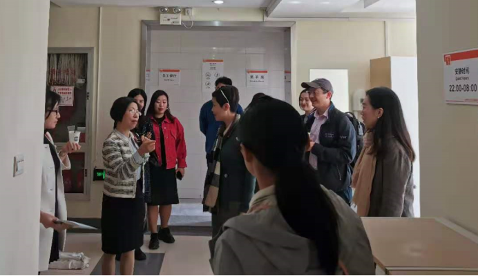 13日上午10:00,叶经理一行到华东师范大学职工公寓二号楼参观职工住宿和宿舍文化建设的情况。