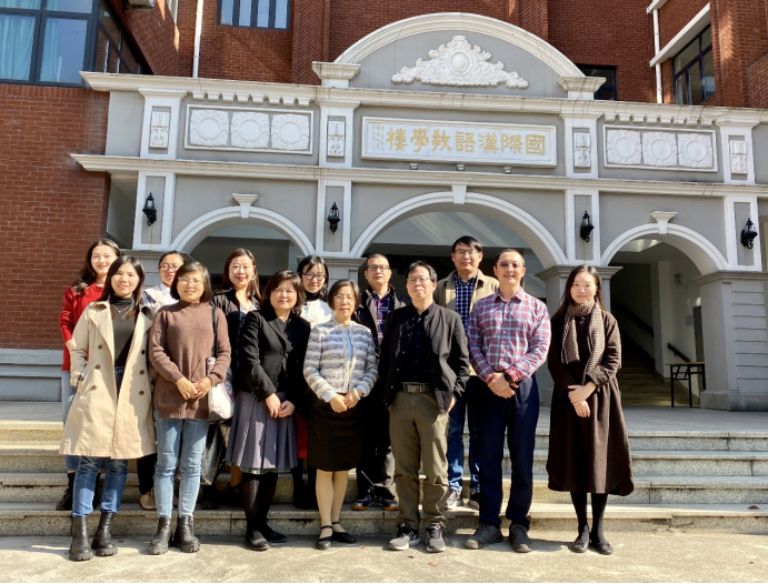 考察团队和华师大教师在国际汉语教学楼