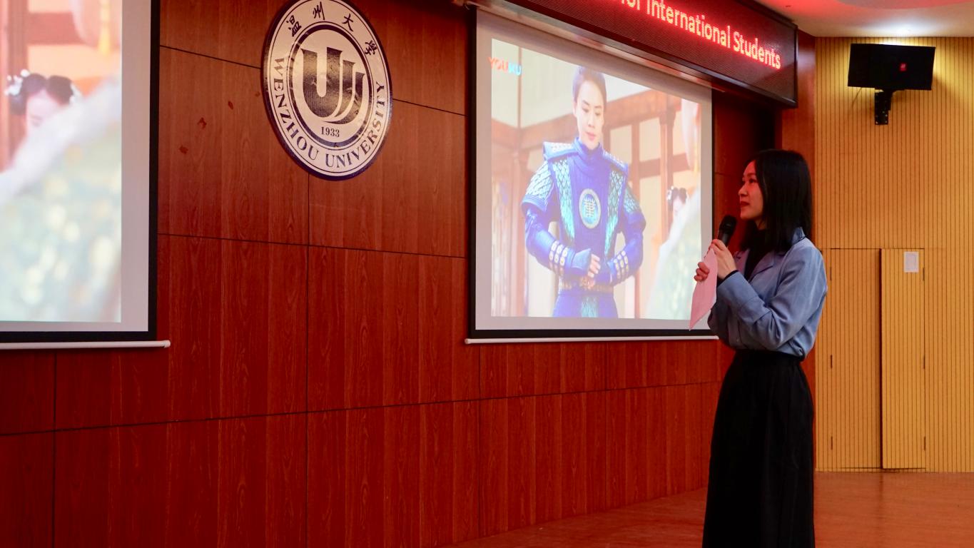 比赛开场,便是妙趣横生的配音比赛。陈氏玉映以流利的口语,一人分饰二角,生动展示了《将军在上》中一对新婆媳之间的有趣对话,赢得了老师同学们的满堂喝彩。陈梦瑶、陆求是别出心裁,选取了《酋长的男人》中的片段进行配音,表达准确,情感真挚,让观众一时间竟忘了是在看配音比赛。应可达则对《哪吒》片段进行了现场配音,用准确的表达和情感处理,将故事传递给大家。