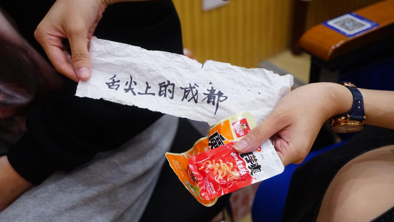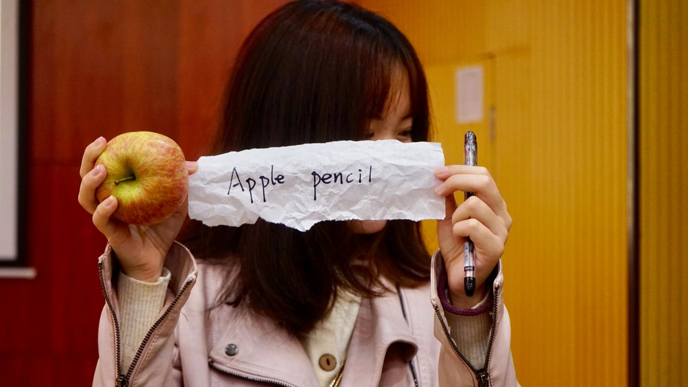 此时,一个游戏环节使比赛现场的氛围更热烈了。除了抢答猜拼图的游戏,最有意思的莫过于抽奖环节。“舌尖上的成都”“舌尖上的深圳”“舌尖上的杭州”“为梦想创造可能”,所抽出纸条上的文字究竟所对应什么奖品?引发着所有人的好奇。最后一位抽奖者还获得了本次比赛的终极大奖——“Apple Pencil”(an apple & a pencil)!