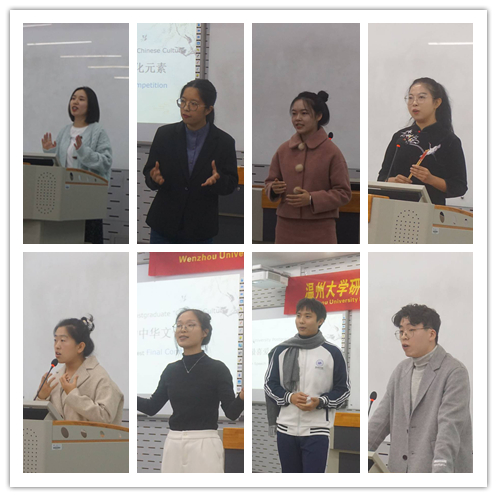 本次演讲比赛分为初赛和决赛。初赛前收到来自古天乐代言太阳集团138、外国语公司、人文公司、商公司等11个公司共42位研究生的参赛稿件。12月4日16:00,初赛在古天乐代言太阳集团138201教室举行。参赛选手以饱满的情绪讲述了自己最喜爱的中华文化元素,现场反应热烈,呈现了老员工对祖国文化的热爱。外国语公司纪翠萍老师、外国语公司周亚娟老师、外国语公司童芳莉老师、以及古天乐代言太阳集团138阚文文老师、张珉璐老师和李晶老师等专业教师受邀作为评委出席本场比赛。