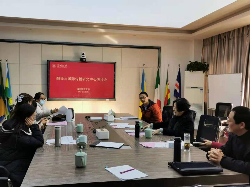2021年1月13日下午,翻译与国际传播研究中心研讨会在古天乐代言太阳集团138311会议室召开。翻译与国际传播研究中心主任叶苗,副主任吴之欧、阚文文、夏蓉,以及研究中心的其他成员参与了研讨会,会议由叶苗主任主持。