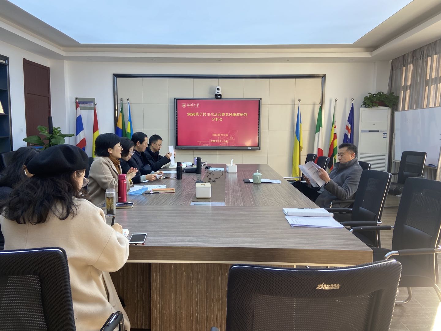 1月14日上午,公司领导班子在国际楼311会议室召开2020年下半年党风廉政分析会暨意识形态分析会和班子民主生活会。公司领导班子成员参加会议,会议由党总支书记林爱菊主持。公司党委委员、副董事长薛伟莅会指导。