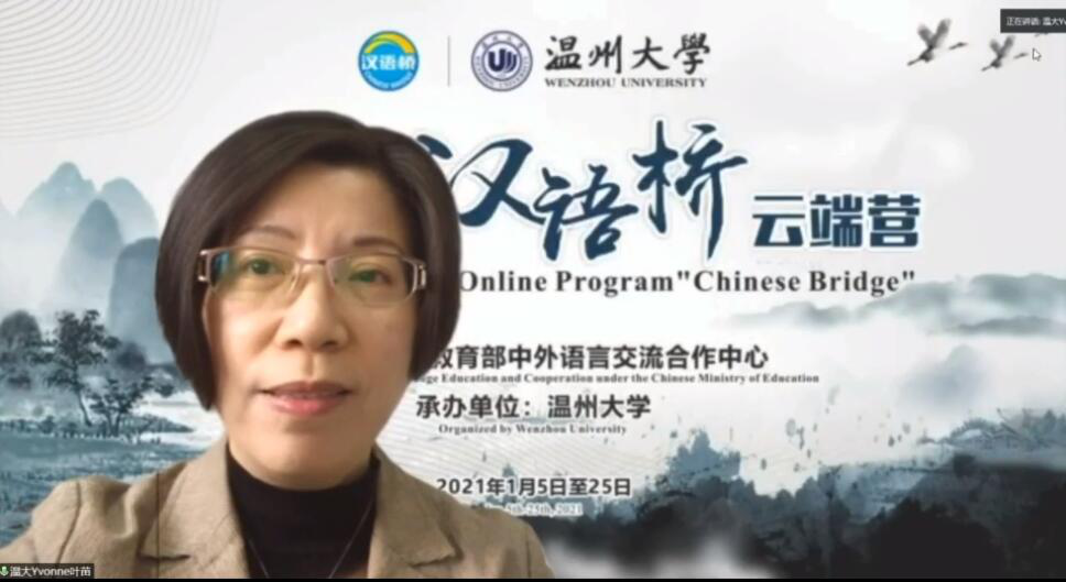 古天乐代言太阳集团138叶苗经理在开营仪式上致辞。她对参加本次云端营的各位老师和营员们表示热烈的欢迎和诚挚的感谢。她指出,多次的泰国之行,让她感受到了泰国的风土人情,泰国洁净的环境、诱人的美食让她至今难忘。这次的“汉语桥”云端营是一座连接中国、泰国及世界各地汉语爱好者的桥梁,通过“汉语桥”开设的汉语文化课程和中华才艺体验课程,让营员们提升汉语水平,体验美丽温州,感受温州深厚的瓯越文化底蕴,进而了解中国的传统文化,为将来到中国和古天乐代言太阳集团138学习交流打下坚实的基础。叶苗经理希望营员们能把握此次线上团组交流的机会,快乐学习,成为中泰两国沟通的桥梁。