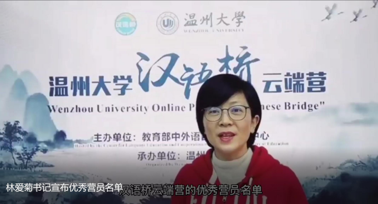 泰国纳瑞宣大学的吴宝宏、吴雨婷、李伟凡和端芳四位同学作为优秀营员代表发言。他们在发言中衷心感谢“汉语桥”云端营给他们这次机会,让他们学到了很多感兴趣的课程,例如茶文化、汉字起源、美食中国,同时非常感谢举办这次活动和上课的老师们,他们会努力学习中文,勤学多练,希望将来能到中国工作和学习。