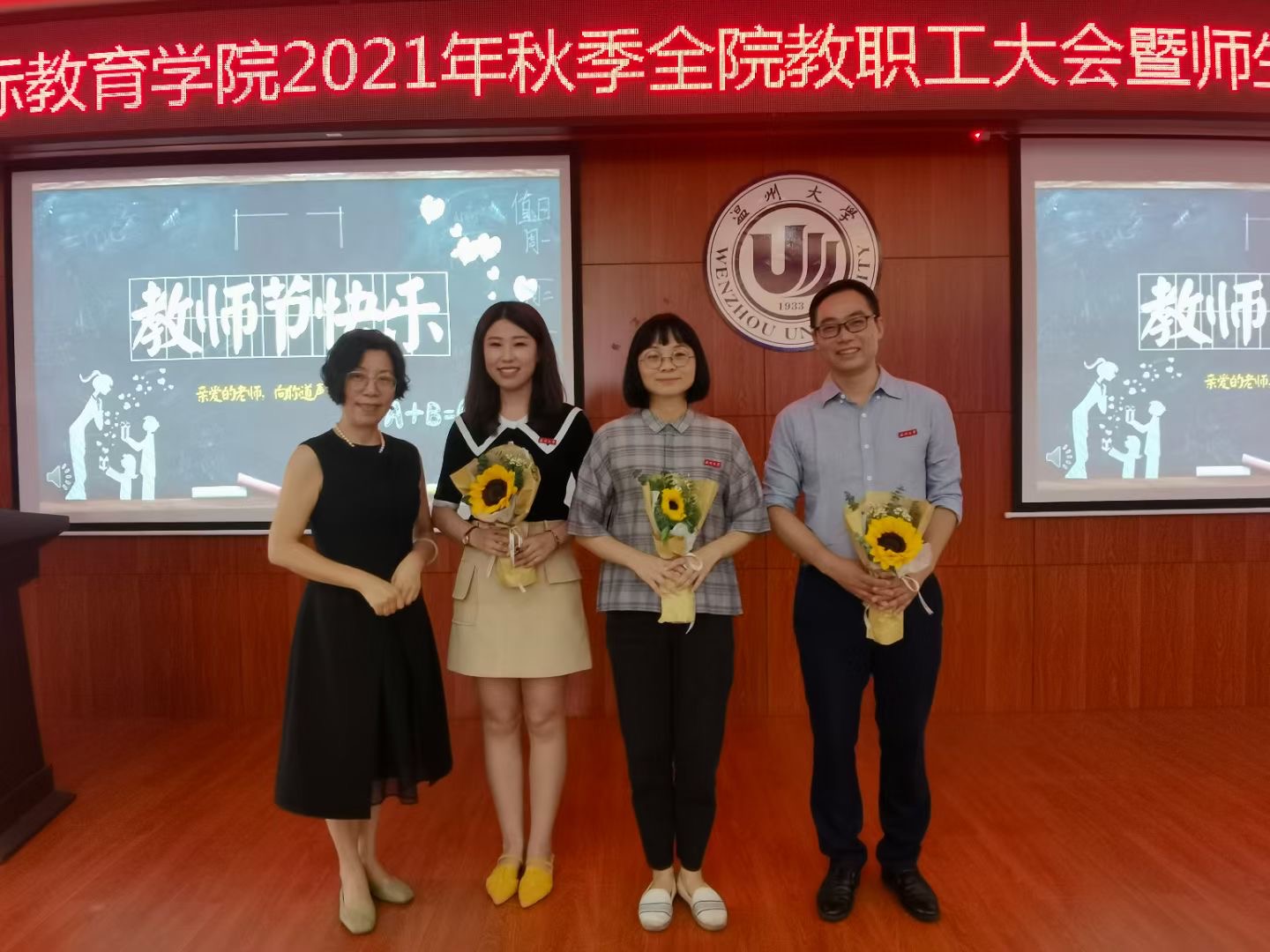 值此第三十七个教师节来临之际,公司为每位教师精心准备了鲜花,公司班子向全体教职工致以节日的祝贺和诚挚的问候。激励广大教职工立足一线、爱岗敬业、无私奉献,推进立德树人工作。