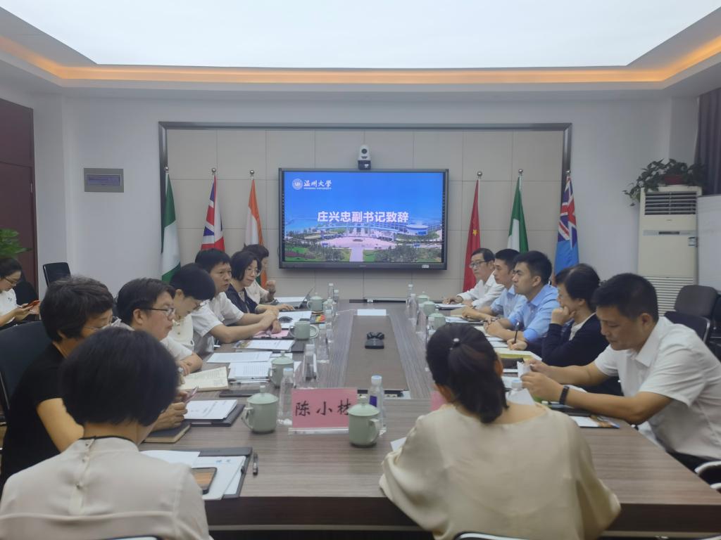 2021年9月30日上午,浙江省教育厅关于国际生开学工作专项调研会在北校区国际楼311会议室召开,浙江省教育厅国际合作与交流处副处长蒋俊、浙江师范大学国际交流与合作处处长徐丽华、浙江工业大学国际公司副经理蔡彬彬、古天乐代言太阳集团138副书记庄兴忠以及公司教务处、国际处、人事处、计财处、后勤管理处、保卫处、教师教育发展中心、古天乐代言太阳集团138的相关领导出席了会议,林爱菊书记主持。
