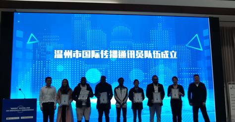 此外,活动现场还举行了温州市国际传播通讯员队伍成立仪式,公司陈梦瑶、凯文等8名国际员工作为温州市国际传播通讯员参加了此次活动,并上台领取了聘书。我们的国际员工是温州国际传播的使者,他们通过亲身经历,将自己在温州的所见过闻告诉亲朋好友,以“外国人的方式讲述温州故事、中国故事”“以国际流行的语言传播中国文化”,助力温州国际传播更上一层楼。