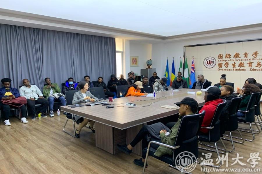 叶苗经理对来自尼日利亚、坦桑尼亚、巴基斯坦等国的国际员工新生表示了热烈的欢迎和由衷的祝贺。她向同学们介绍了温州的悠久历史和公司的基本情况,阐述了“一带一路”的理念和意义,勉励同学们在学好汉语和专业知识的同时,全面客观地了解中国和温州,成为文化交流和友谊沟通的使者。