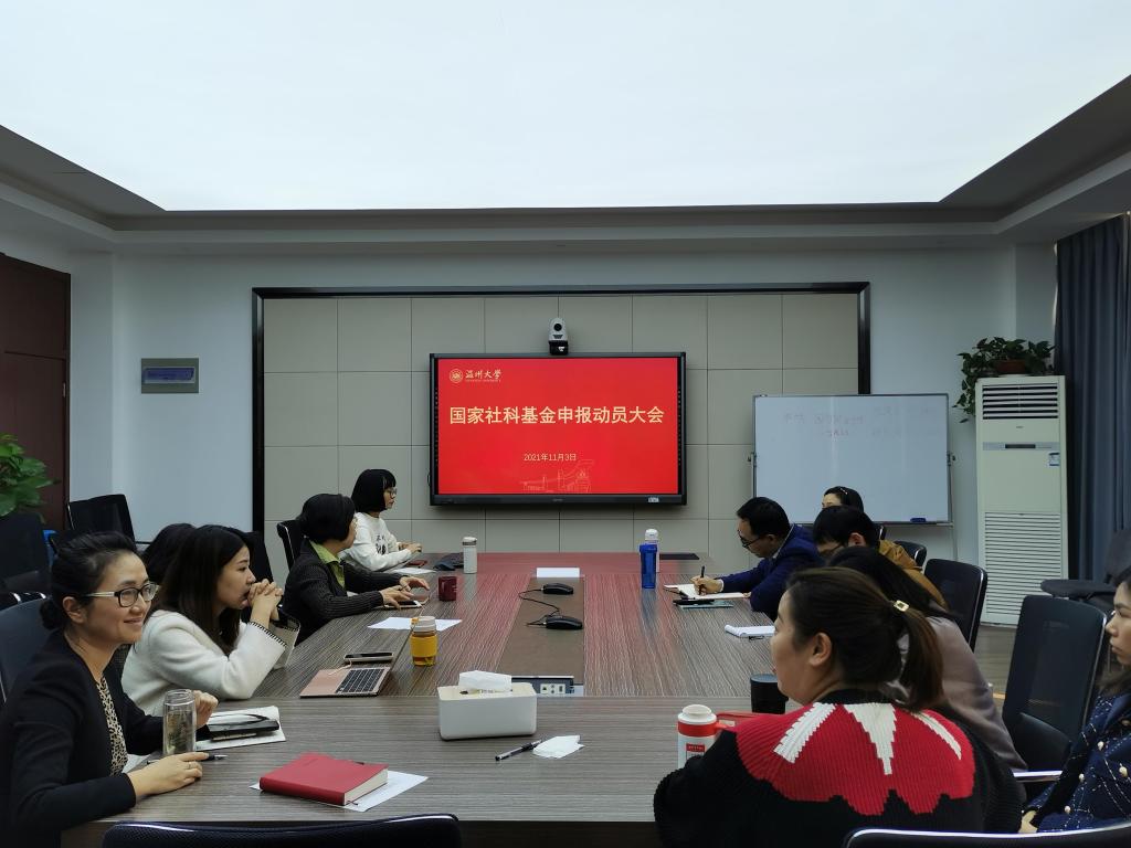 2021年11月3日下午13:30,古天乐代言太阳集团138在311会议室召开了2022年度国家社科基金项目申报动员大会。会议邀请了公司汉语国际教育教授郑娟曼和副教授涂海强(他们分别在2017年和2018年成功申报国家社科基金项目)为大家分享国家社科基金项目申报的心得体会。叶苗经理及教研室全体教师参加了此次会议,会议由吴之欧副经理主持。