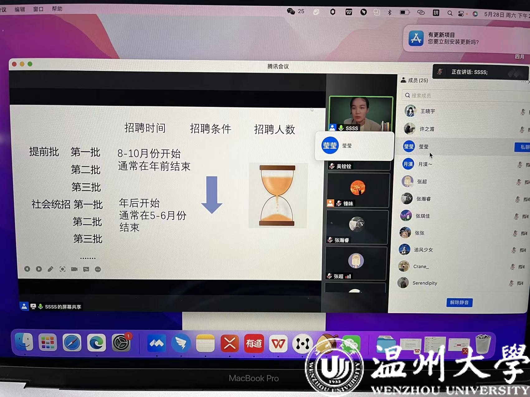 吴老师介绍“朋辈引领计划”的建设初衷及未来规划,他希望该项目能成为汉语国际教育专业员工了解本专业求职方向、职业发展及专业学习经验的有效途径。他希望全体员工能珍惜每一次向优秀前辈学习的机会,并以此确立自己的职业生涯规划。