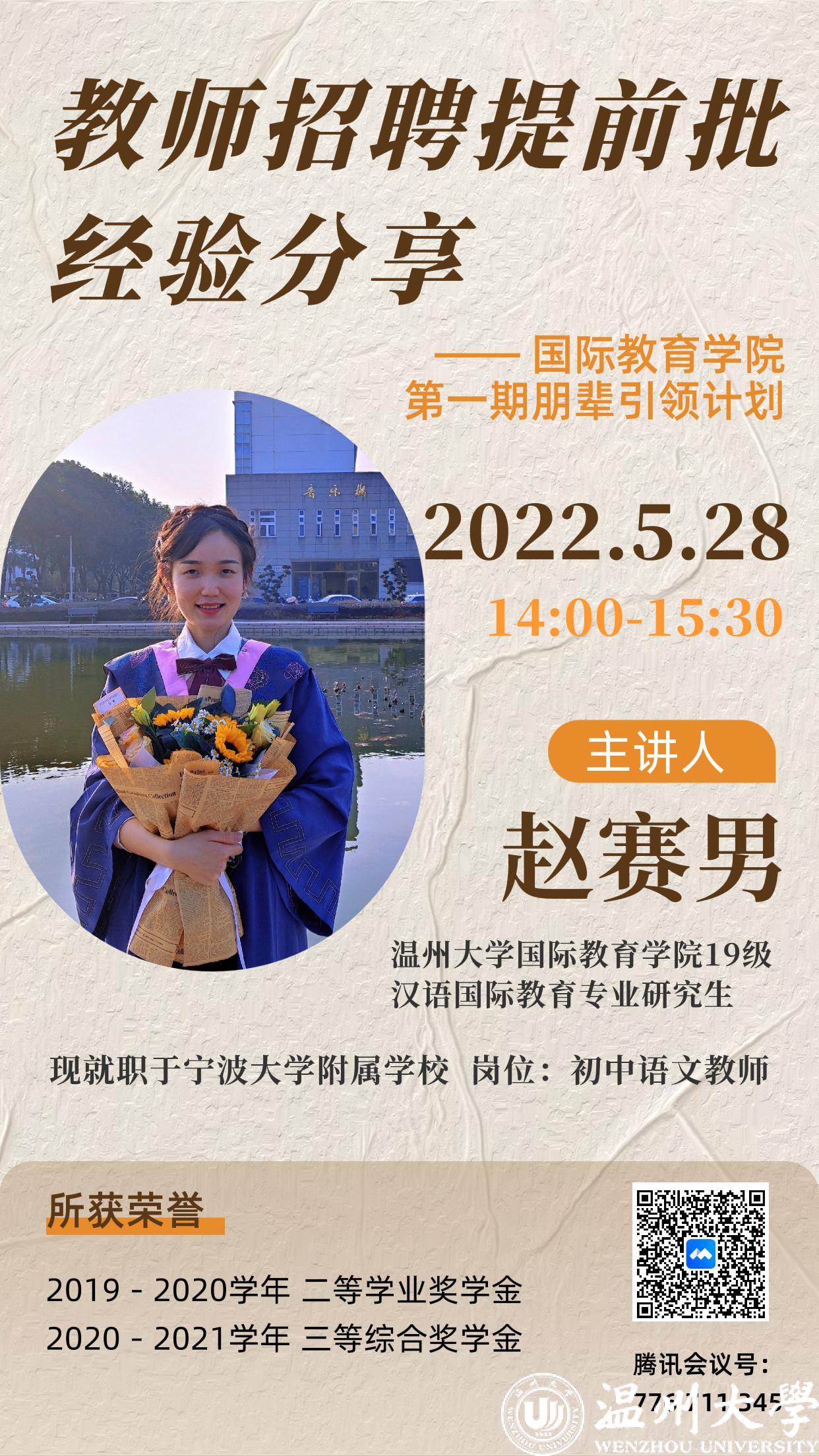 启动仪式后便开始了首期分享,本次活动邀请到19级汉硕专业优秀员工赵赛男为大家作教师编制招考的经验分享。