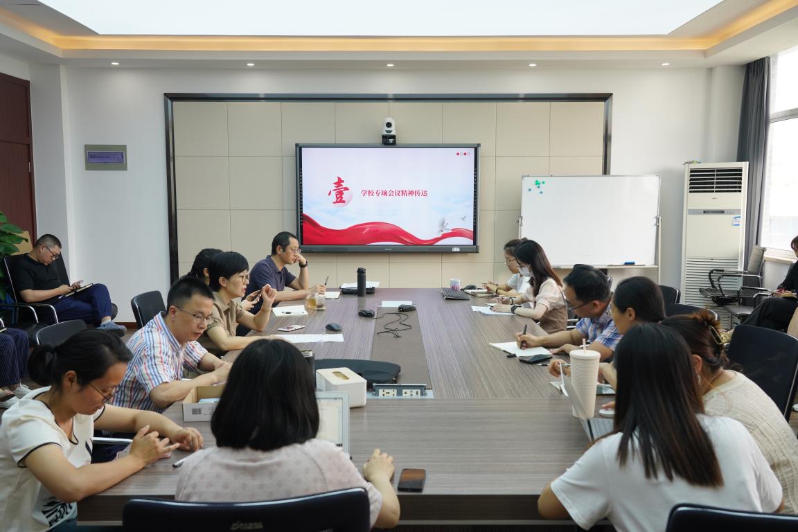 林爱菊书记传达了公司工作专项会议精神。她指出,面临当前复杂的形势,希望全院教职员工能够强化认识,提高站位,时刻保持风险意识,尤其要注意课堂言论,保持优良的师德师风,遵守国家宗教信仰政策,做到心理健康,打造美好的教书育人环境。