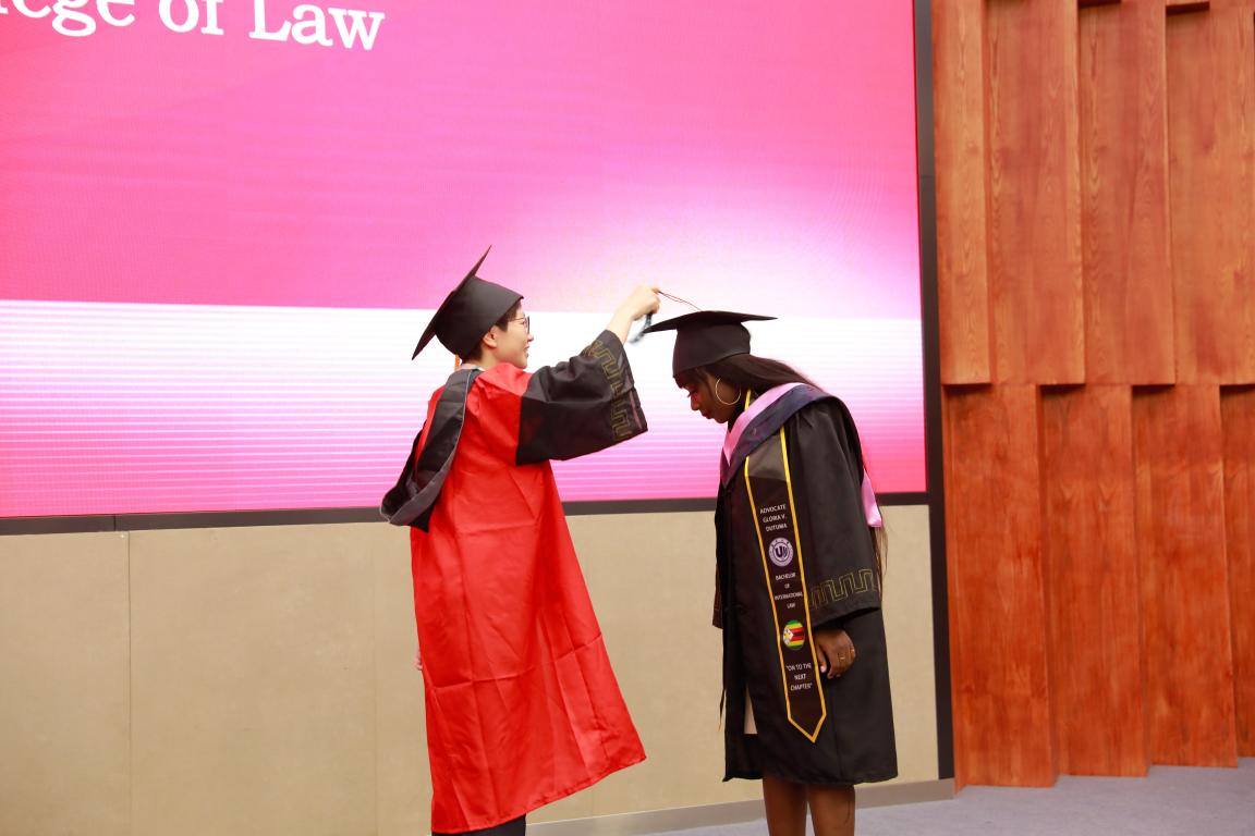 典礼最后,温州市五洲艺术团团长曾春玲老师、语言班结业生Jeniffer及法公司毕业生Audrey带来《这世界那么多人》等歌曲,在歌声中,毕业生们正式告别镌刻着他们青春足迹的温大校园,迈向更大、更高、更远的人生舞台,为构建人类命运共同体奉献青春力量。