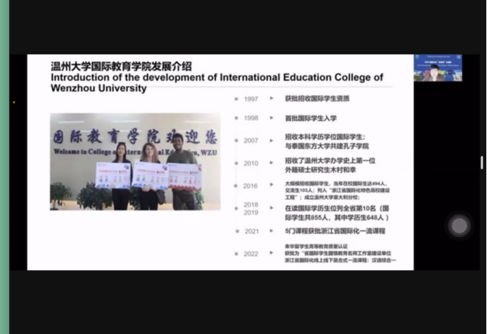 本次会议主持人徐丽丽老师首先对中方、印尼代表、全体教师同学表示热切欢迎,并且向印尼教师员工介绍了温州人文山水,她表示,疫情后非常欢迎大家来温州游玩。