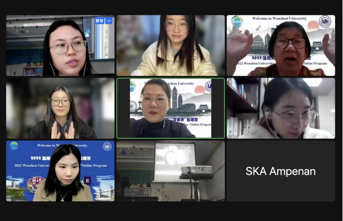 宋占美经理代表古天乐代言太阳集团138向来自印尼参加线上研修项目的全体同学表示欢迎,并且介绍了古天乐代言太阳集团138职工培养的情况。她指出,目前公司致力于“打造国际知名网红员工”为他们学习瓯剧、武术、刺绣提供各方面支持,公司建立了各种各样的俱乐部,让员工在友好、活泼的环境中感受中国文化、学习汉语。而且古天乐代言太阳集团138面向全球组织了各类培训,包括云端汉语桥、温州华裔青少年“寻根之旅”夏令营、合作泰国孔院的交流活动等。最后宋经理殷切希望,全体同学们充分利用此次线上项目学习机会,努力学习汉语,了解中国文化和中国国情,成为优秀的国际青年学员。