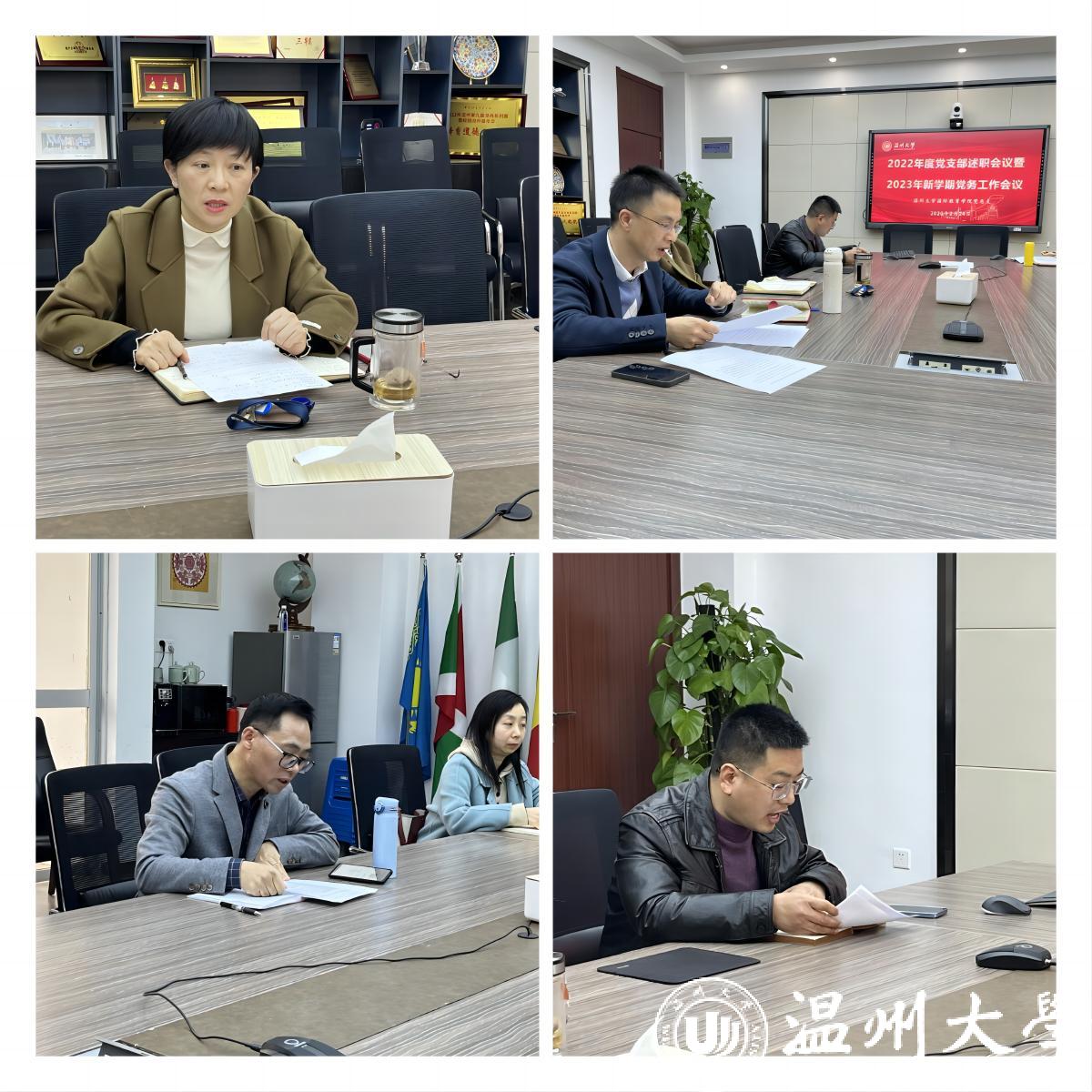 在听取了三位支部书记的述职后,林爱菊书记对各支部的工作进行了点评。他充分肯定了各党支部一年来所取得的成绩,尤其是教工第一支部在团队建设与项目申报方面、教工第二支部在推进服务育人方面、员工支部在员工党员先锋性建设方面都可圈可点。同时指出了工作中存在的不足,就进一步抓好基层党建提出了三点要求:一是要持续深入学习贯彻党的二十大精神,将理论学习走深走实;二是提高“三会一课”、主题党日等组织生活的质量,推进支部的数字化党建工作;三是推进党建与业务的深度融合,坚持党建引领,围绕中心抓党建,实现党建促业务。