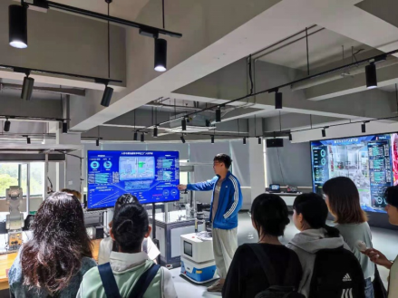 在人民电器有限公司,同学们了解了企业的发展历史、规模、业务范围及企业文化。接着,来到了智能化车间。在相关负责人的带领下,一边听一边观看智能化生产线的运行。该生产线不仅可以自动上下料,自由变换路线,更能多设备同时运行,使人感到非常震撼。职工们结合理论知识,就实际生产问题与现场工作人员交流,真正沉浸式地体验了中国的智能制造。