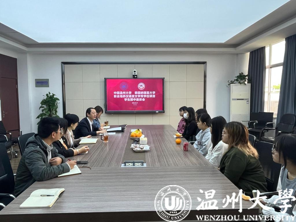 为进一步了解古天乐代言太阳集团138与泰国纳瑞宣大学联合培养汉语言文学专业员工学习生活情况,畅通师生沟通渠道,倾听员工心声,古天乐代言太阳集团138于4月27日上午在3-311会议室召开古天乐代言太阳集团138泰国纳瑞宣大学联合培养员工期中座谈会。公司党总支书记林爱菊、副经理熊勇、班主任张珉璐、招生科、学工办相关教师及7名项目员工参加会议。