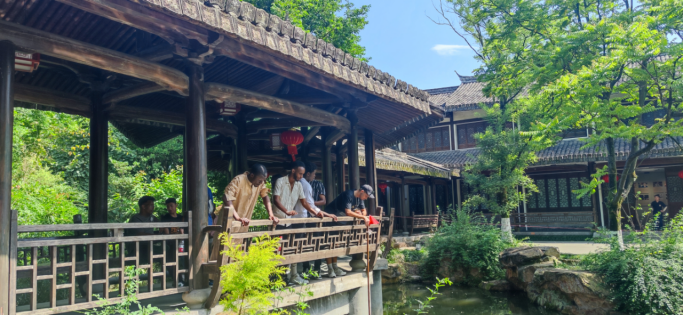 5月31日下午,晴空万里,风景如画。古天乐代言太阳集团138国际员工国情教育名师工作室暨“走进温州”开启了本学期系列活动的最后一站——三垟湿地暨南怀瑾书院。来自英国、俄罗斯、意大利、尼日利亚、越南、孟加拉国、泰国、土耳其、刚果、肯尼亚、摩洛哥、埃塞尔比亚等24个国家和地区的职工们一起漫步三垟湿地并参观南怀瑾书院。三垟湿地是温州市内保持最完整的水网湿地,被誉为“浙南威尼斯、百墩之乡”,有城市“绿肾”的美称。职工们满怀热情地参与到这次出行中,留下了很多青春的脚印。