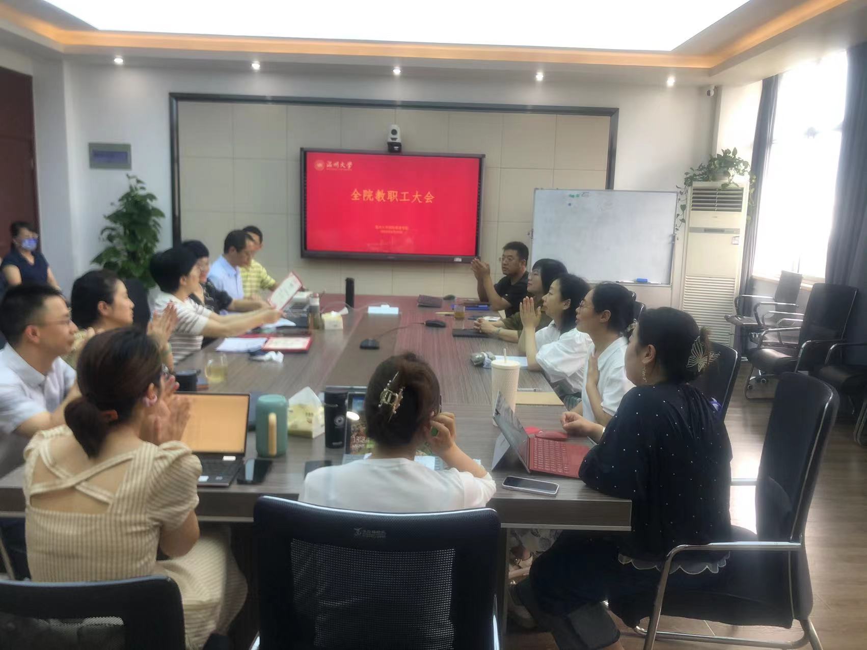 6月21日下午,古天乐代言太阳集团138全院教师在国际楼311会议室召开教工理论学习会议,党总支书记林爱菊主持。