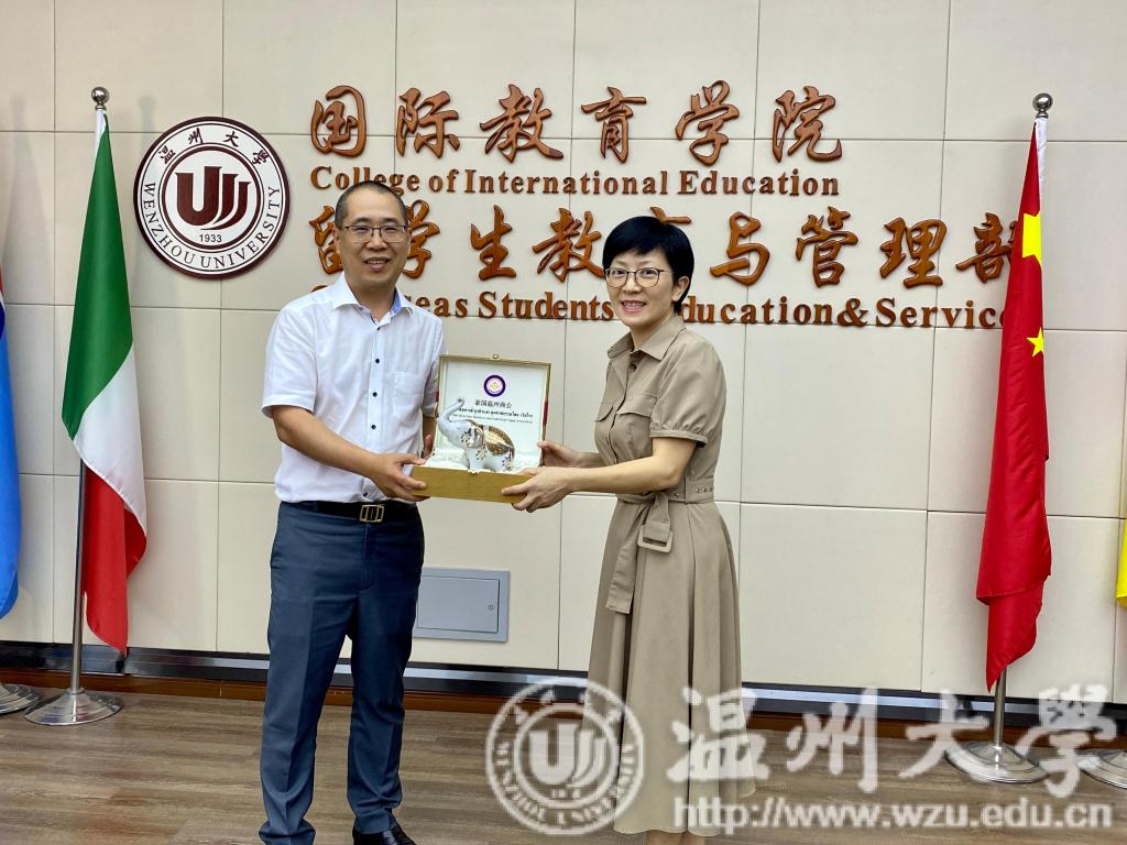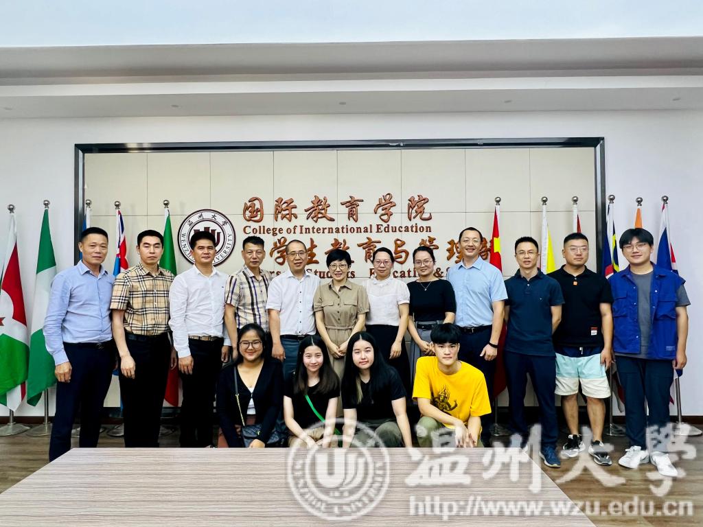 2023年7月14日,泰国温州商会会长郑炳克、常务副会长薛圣萍、章圣利、会务顾问沈高良、陈敏一行来院交流洽谈。国际交流与合作处副处长郑婷、公司党总支书记林爱菊、副书记方建晓、汉语国际教育教研室主任徐丽丽及相关科室老师、泰国“腾飞班”员工代表参加交流会,公司副经理熊勇主持会议。