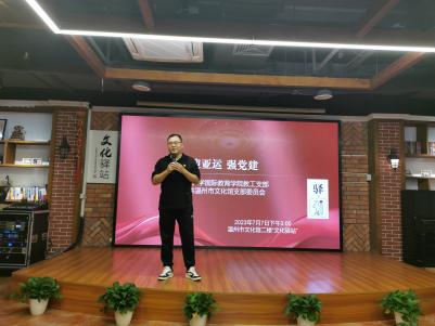 为推进学习贯彻习近平新时代中国特色社会主义思想主题教育走深走实,积极响应中共温州市委组织部开展“红七月·服务月”活动的倡议,7月7日,公司教工党支部组织开展了“迎亚运分享会暨与温州市文化馆党支部党建联建活动”。此次活动于温州市文化馆二楼“文化驿站”举行,公司教工支部党员、温州市文化馆党支部党员、温州市文化馆青年理论学习社成员等参与了活动。活动围绕“学思想、当先锋、促践行”的主题,结合亚运会保障工作等大事要事,学习传达近期习近平总书记在文化传承发展座谈会上的重要讲话精神。