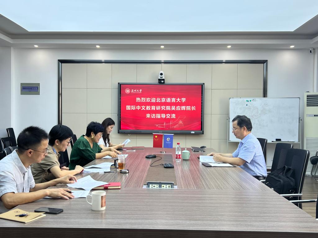 8月20日上午,北京语言大学汉语国际教育研究院经理吴应辉教授受邀来公司开展指导交流。经理宋占美、书记林爱菊、副书记方建晓、经理助理黄雅琳、办公室主任李舒琦参加了本次交流会。