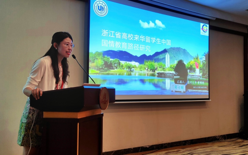 公司教师黄雅琳以《浙江省高校来华职工中国国情教育路径研究》为题在分论坛二中做报告,围绕“如何在高校职工国情教育中凸显浙江特色”、“如何挖掘浙江历史资源中所蕴含的优秀地方文化资源”、“如何向职工深入阐释浙江精神新时代价值和内涵”、“如何将浙江精神融入职工国情教育中”等核心问题,提出建构国情叙事理论体系、构筑面向来华职工的国情育人体系、完善现有课程设置,改进教学模式、加强跨学科协同联动,将研究成果转化为教材、加快建立专业教师队伍,打造来华职工国情教育共同体、推动国情教育实践基地建设,加速成果产出等。
