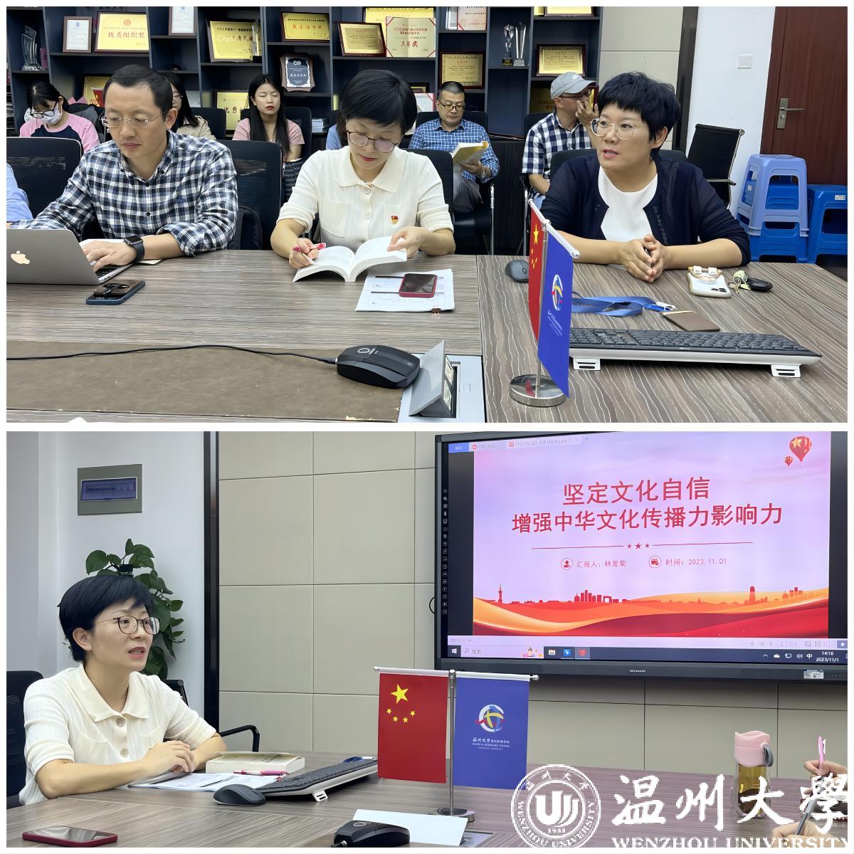 林爱菊书记以《坚定文化自信 增强中华文化传播力影响力》为题讲授专题党课。林书记以习近平总书记关于文化自信及讲好中国故事的指示精神、重要论述为立足点,深刻分析了推进文化自信自强,夯实传播中华文化的思想根基,同时也全面分析了中华文化的精神标识和文化精髓,接着林书记结合公司实际,指出了提高传播效能的实施路径。她希望全体师生用好全媒体手段,让中华文化故事“活起来”、发挥国际员工作用,让中华文化故事“火起来”、打造高素质队伍,让中华文化故事“传起来”。