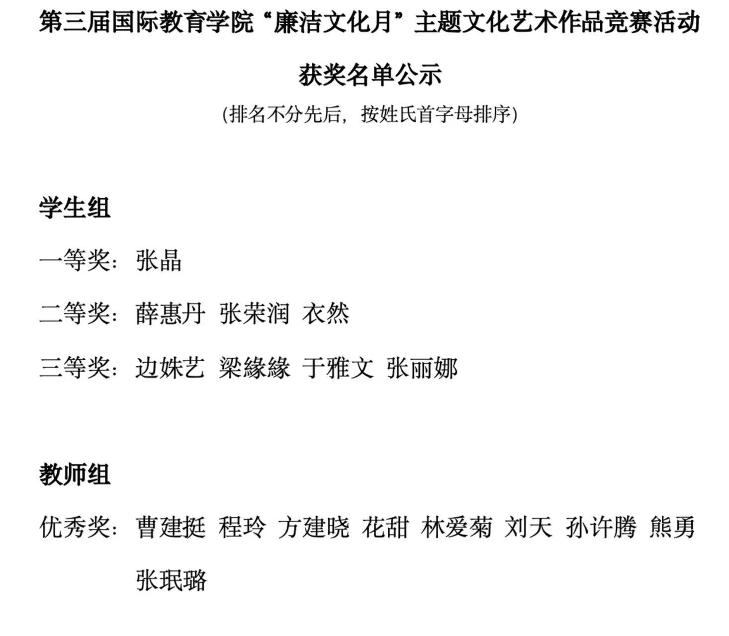 获奖名单: