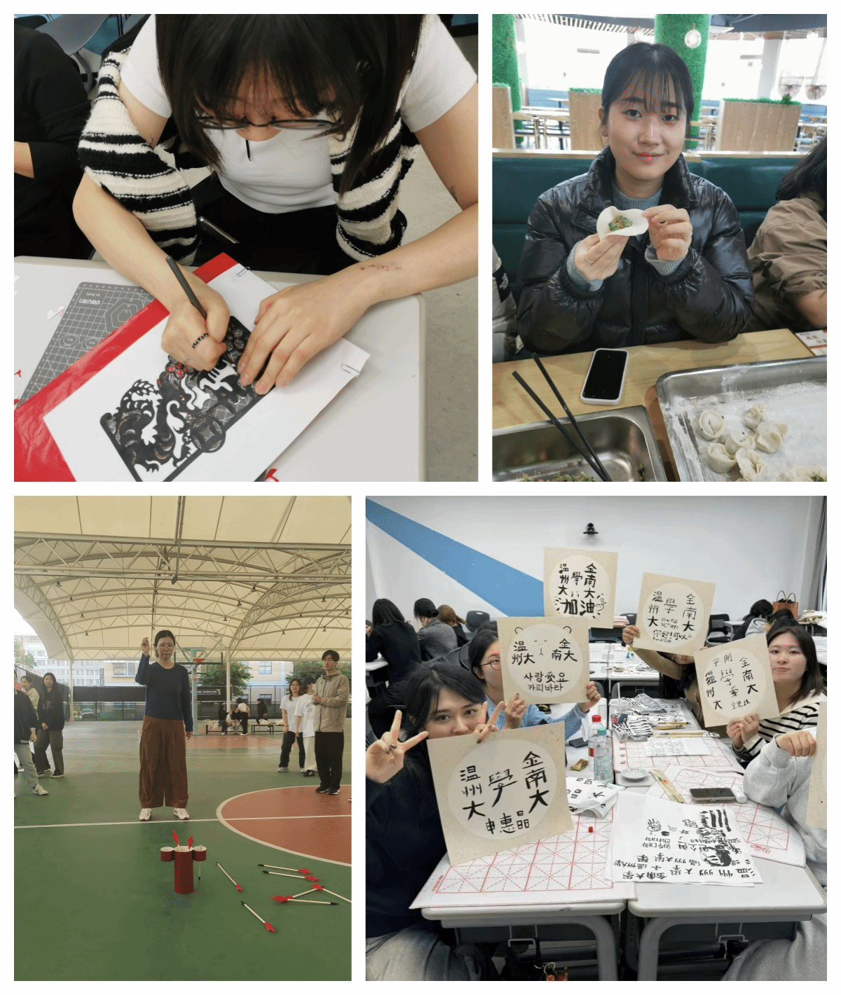 两周的语言与文化课程里,学员们除了参与了课程学习,还亲身体验了剪纸、书法、八段锦、包饺子等中国传统技艺,品尝了三鲜面、鱼饼、鸭舌、麦饼、江蟹蒸红薯、清炒盘菜等温州特色美食。这些丰富多彩的活动,使学员们对中国历史文化和风俗习惯有了更深入的了解。