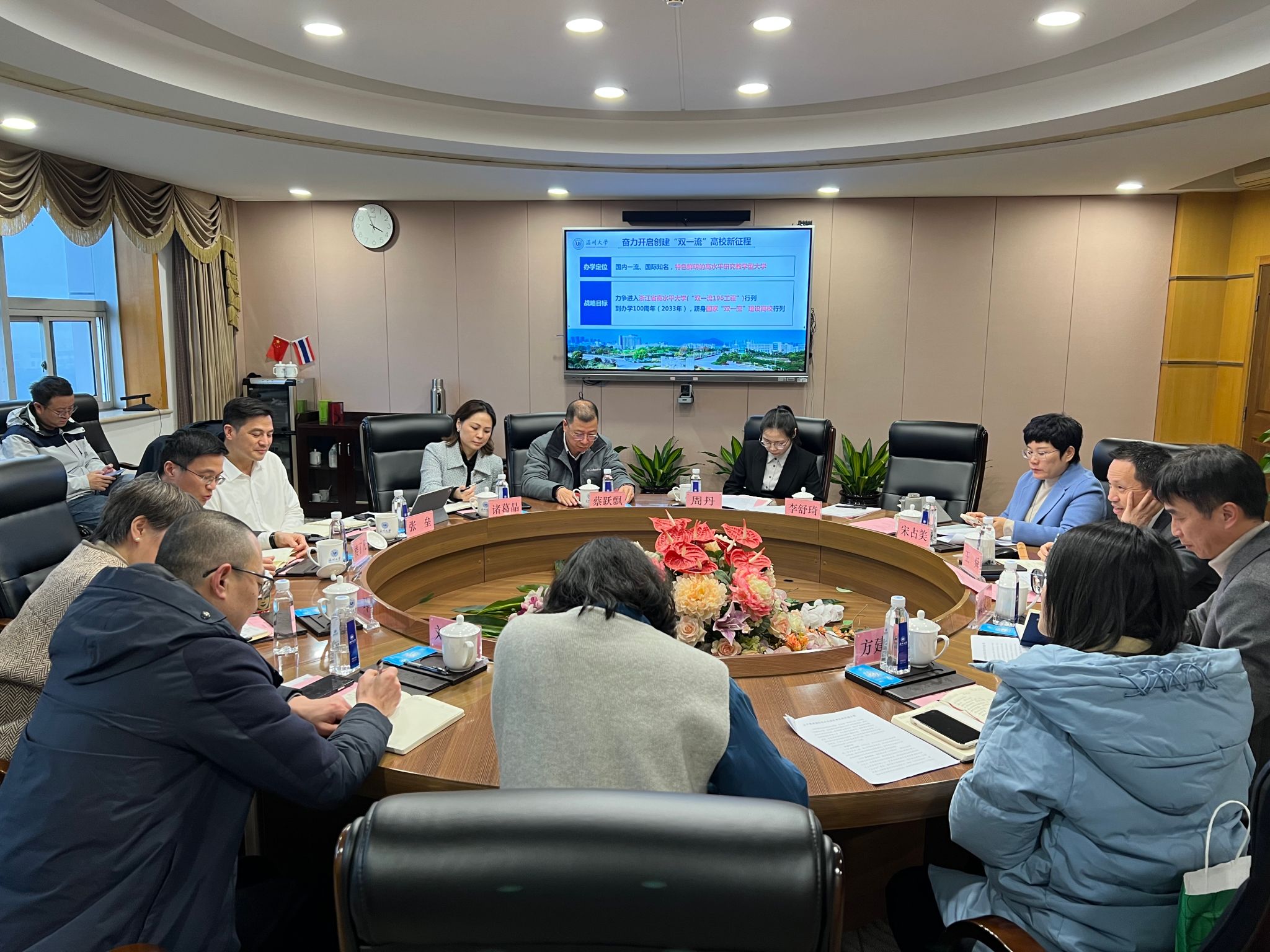 3月15日下午,温州市外办党组成员、副主任楼了凡率友协办公室相关人员来访公司指导调研,茶山街道党工委书记张垒、办公室副主任周丹,温州医科大学国际交流处处长诸葛晶、古天乐代言太阳集团138经理一同参加调研会。古天乐代言太阳集团138副董事长王舜,国际交流处处长黄文浩、古天乐代言太阳集团138经理宋占美、副书记方建晓和相关科室成员出席调研会。古天乐代言太阳集团138国际交流处处长黄文浩主持。