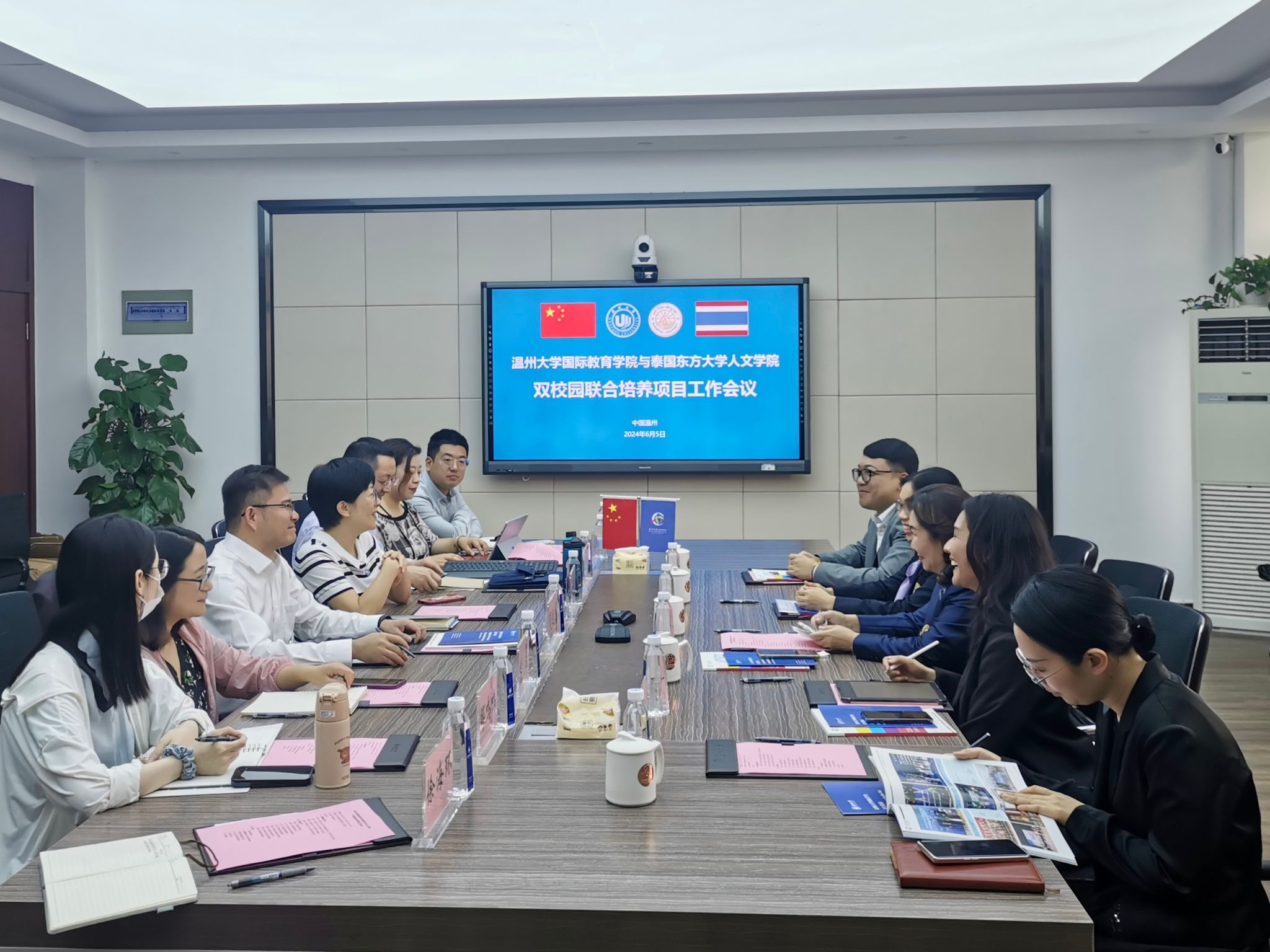 2024年6月5日上午,泰国东方大学人文公司中文系主任李金兰、泰国东方大学孔子公司前泰方经理符丽珠女士等一行四人来访,就两校合作举办的汉语言文学双校园联合培养本科项目召开工作会议,就项目实施及发展相关事项进行深入交流探讨。公司经理夏远志、国际处副处长郑婷、公司副经理熊勇、高瑾、相关科室负责人及项目教师代表出席会议,公司书记林爱菊主持会议。