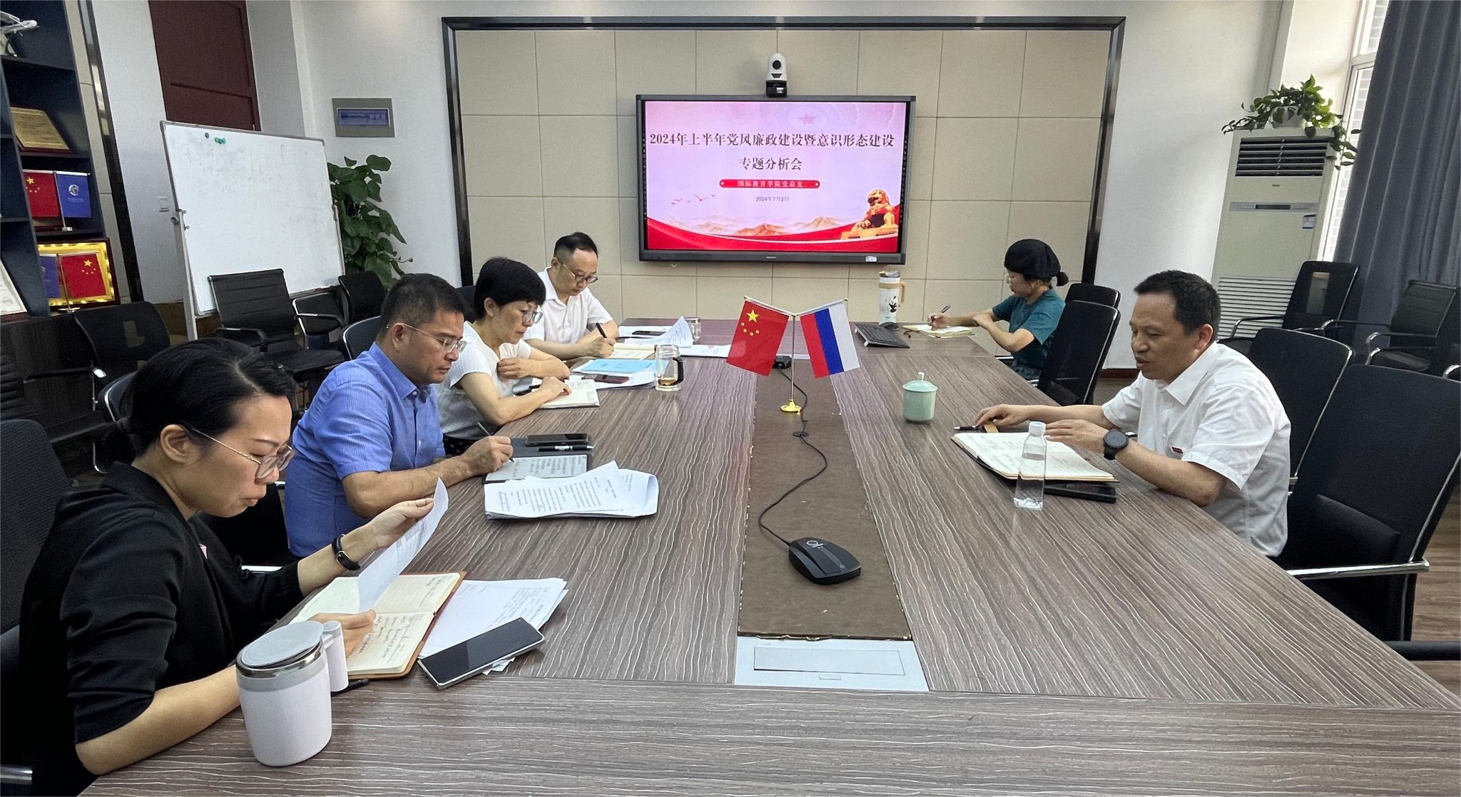 林爱菊书记代表公司班子作2024年上半年公司党风廉政建设和意识形态工作总结汇报。报告指出,公司坚持以习近平新时代中国特色社会主义思想铸魂育人,深入开展党纪学习教育,教育引导师生牢固树牢“四个意识”坚定“四个自信”坚决做到“两个维护”。公司通过思想建设、制度建设、组织建设一体推进党风廉政和意识形态工作,领导班子严格履行“一岗双责”,主动发挥“头雁效应”,形成职责边界清晰、层层负责的工作局面。报告强调公司将持续深化党建与业务的深度融合,以党建赋能公司人才培养、团队建设、队伍建设、校地合作,以时不我待、只争朝夕精神抓实、抓细重点项目。