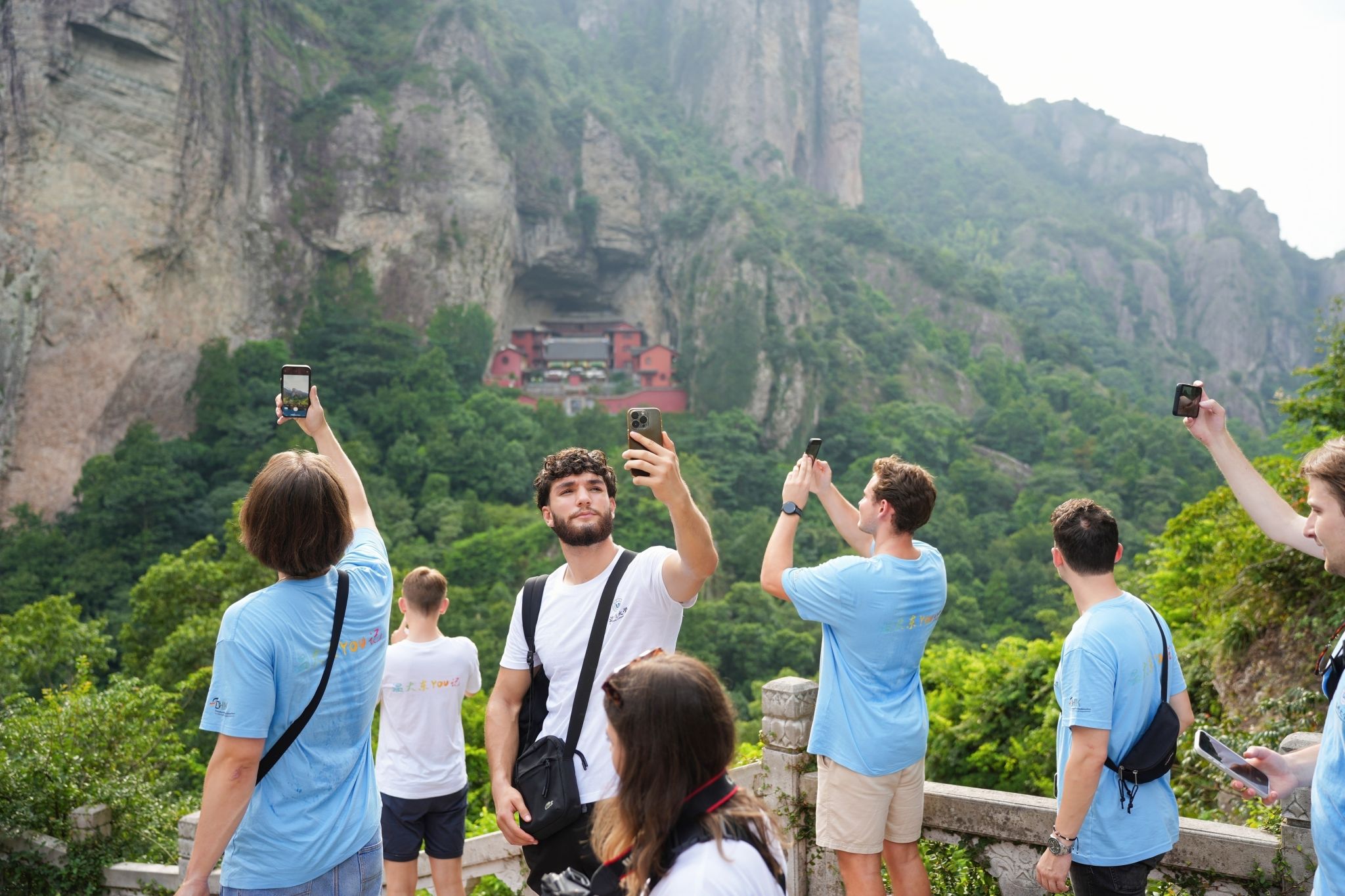 德国DHIK青年温州暑期公司的第一站是首批国家5A级景区——雁荡山森林公园。德国员工们首先参观雁荡山博物馆,了解雁荡山地质与生态情况等,而后进入雁荡景区,那一幕幕如诗如画的景色让他们陶醉。德国青年员工们在果盒桥欣中国第二大剧——越剧,感受中国戏曲的独特妆容和婉转悠长唱腔。接着游览象征忠贞不渝爱情的夫妻峰和以悬崖叠嶂、奇峰怪石与碧潭清润而著称的灵峰,并登上傲然挺立的东西瑶台,欣赏群山如黛和涧水潺潺。“Wonderful!”“Amazing!”......德国青年员工们不禁感叹温州山水的灵秀之气,被大自然的鬼斧神工所折服。