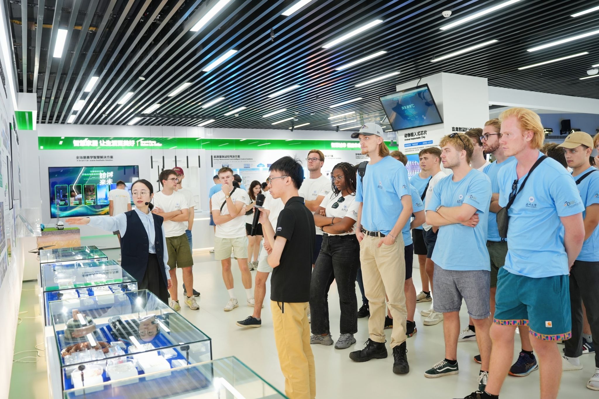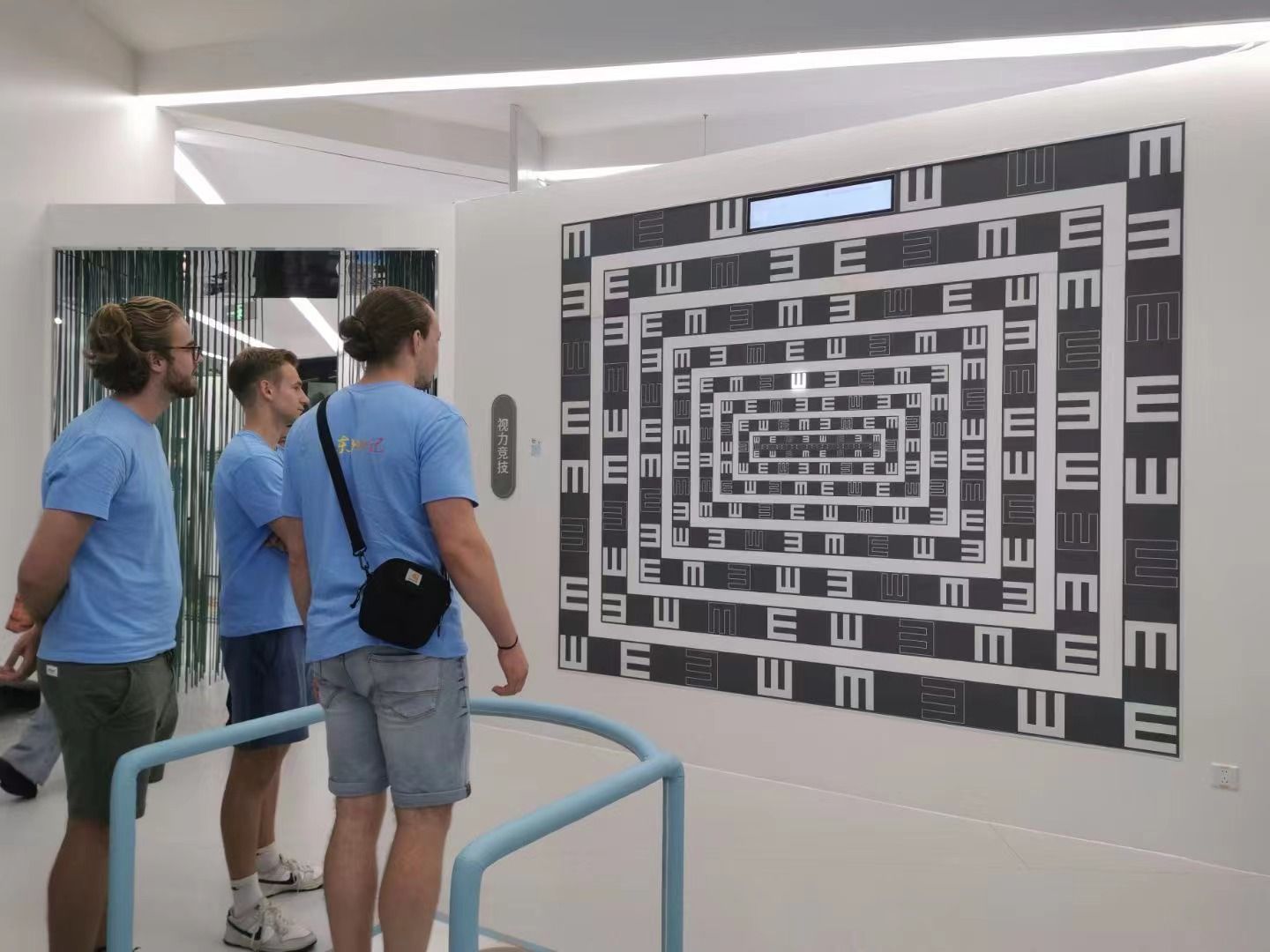 最后,德国青年员工们一行前往全国唯一的眼视光产业创新综合体——中国眼谷参观学习。科技局信息研究院潘栩副经理带领他们参观了新质生产力展厅和科普馆,了解中国新型技术和研究成果,并通过趣味性的体验设备学习关于眼睛的各种知识,德国青年员工们争相体验,纷纷点赞。