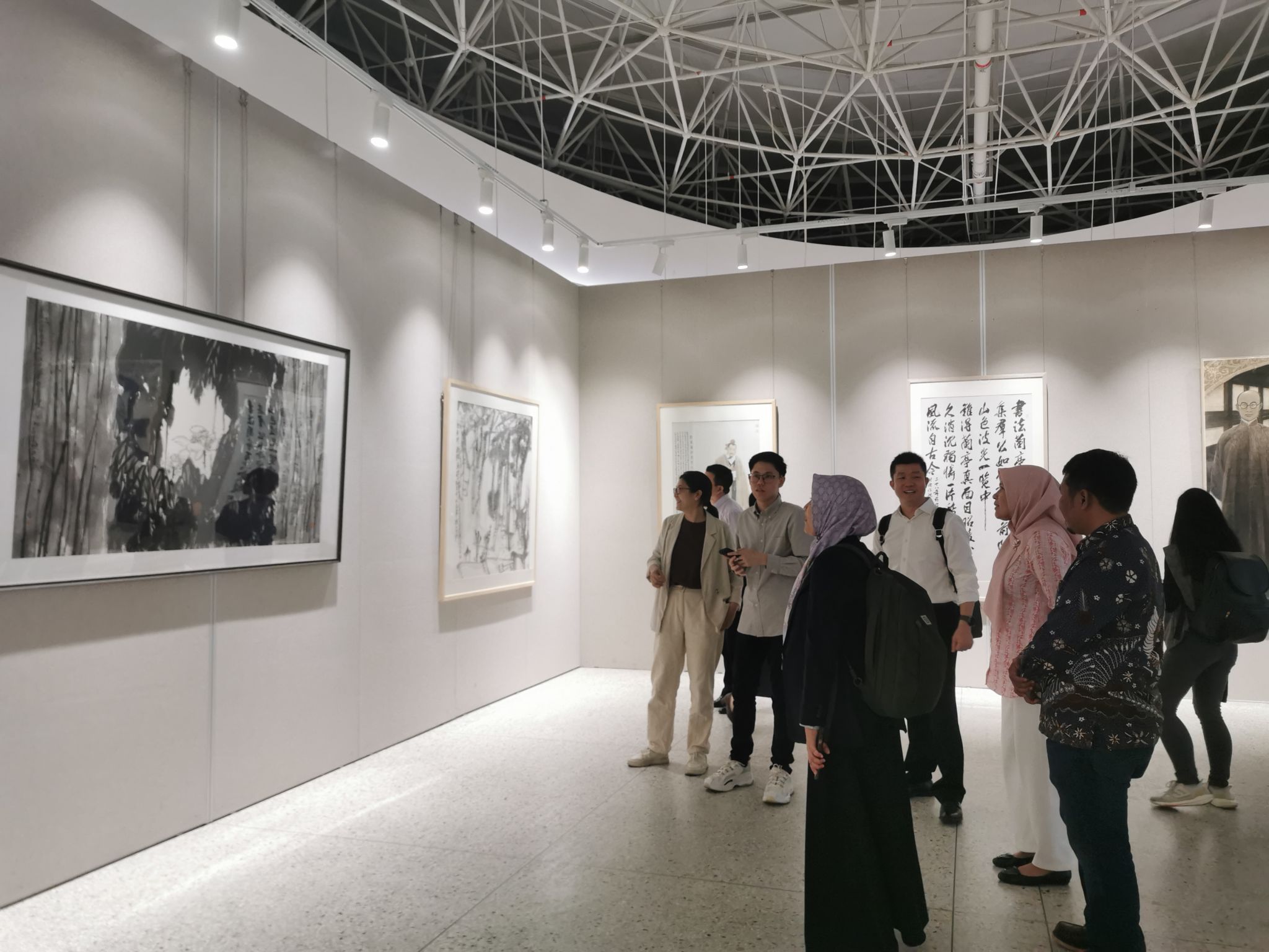 代表团一行首先参观了古天乐代言太阳集团138的发绣馆和美术馆。发绣馆、美术馆中的展品以其精湛的技艺和独特的艺术魅力,吸引了代表团的浓厚兴趣。他们仔细观赏了每一件展品,对古天乐代言太阳集团138在传统文化传承与创新方面的努力表示高度赞赏。