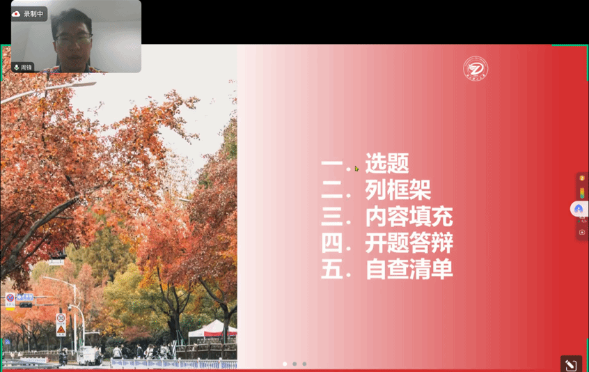 周锋学长针对开题报告的撰写步骤进行了细致入微的讲解,为同学们带来了满满的 “干货”。在选题环节,可以通过广泛阅读、参考导师建议以及与学长学姐、同学交流等多种方式来确定研究课题;同时,选题需综合考量多方面因素,如自身兴趣、关注所在领域的热点问题、课题的可行性和研究价值等。此外,周锋学长还从如何构建开题报告的框架、内容撰写、阅读文献、开题答辩、自查清单等方面分享了宝贵经验。最后,周锋学长特别提醒同学们,撰写开题报告时要注意以下几个当面:一是要严格遵循公司对开题报告的具体要求,不能忽视任何细节。二是要广泛查阅文献,避免重复他人的研究工作,确保研究的创新性。同时,要与导师保持密切且有效的沟通,遇到问题及时请教。在撰写过程中,还要注重语言表达的准确性和规范性,以展现开题报告的专业性。
