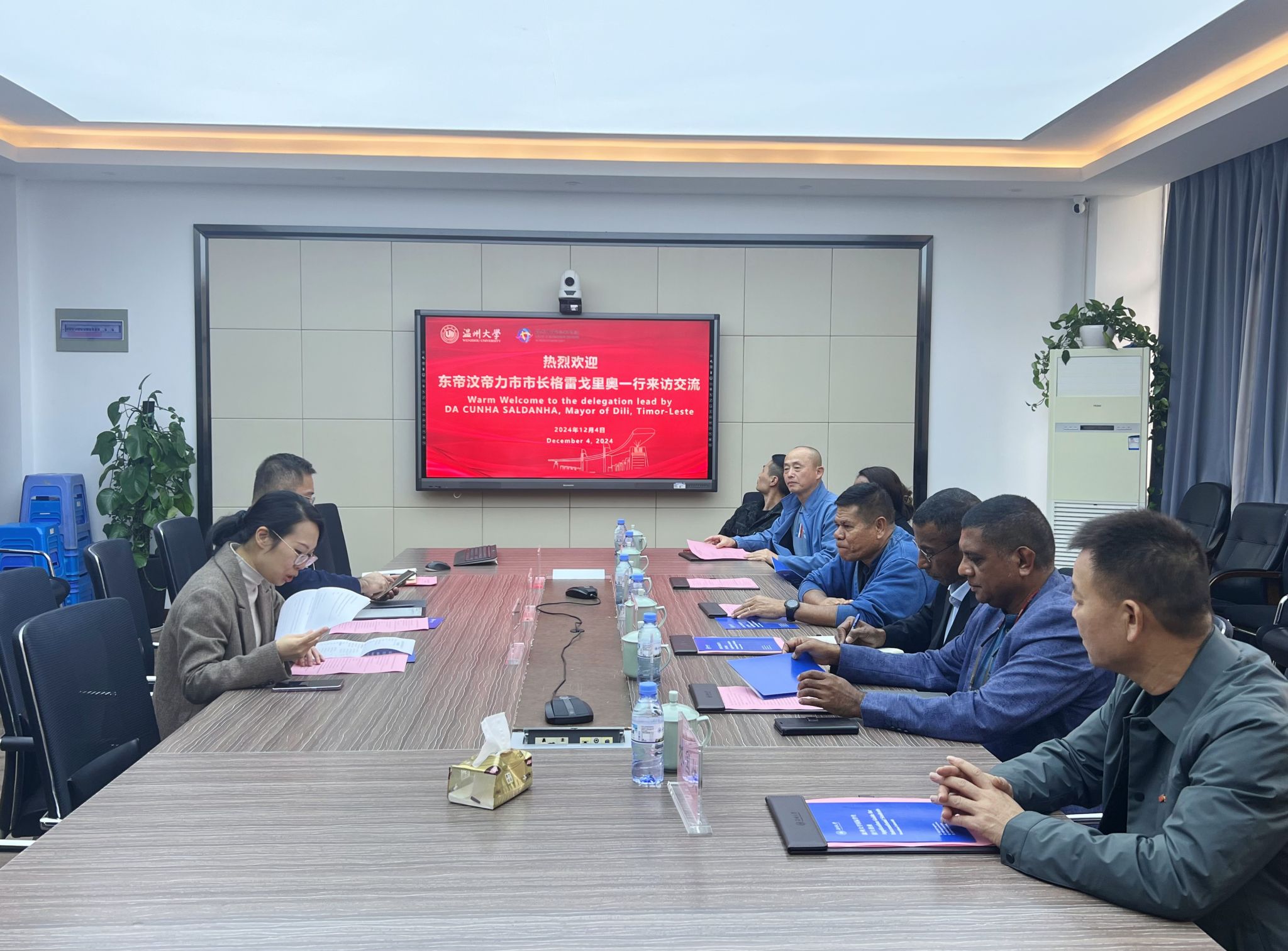 12月4日下午,东帝汶帝力市市长DA CUNHA SALDANHA一行来访古天乐代言太阳集团138。古天乐代言太阳集团138经理夏远志,副经理郑婷与招生科科长李舒琦热情接待。