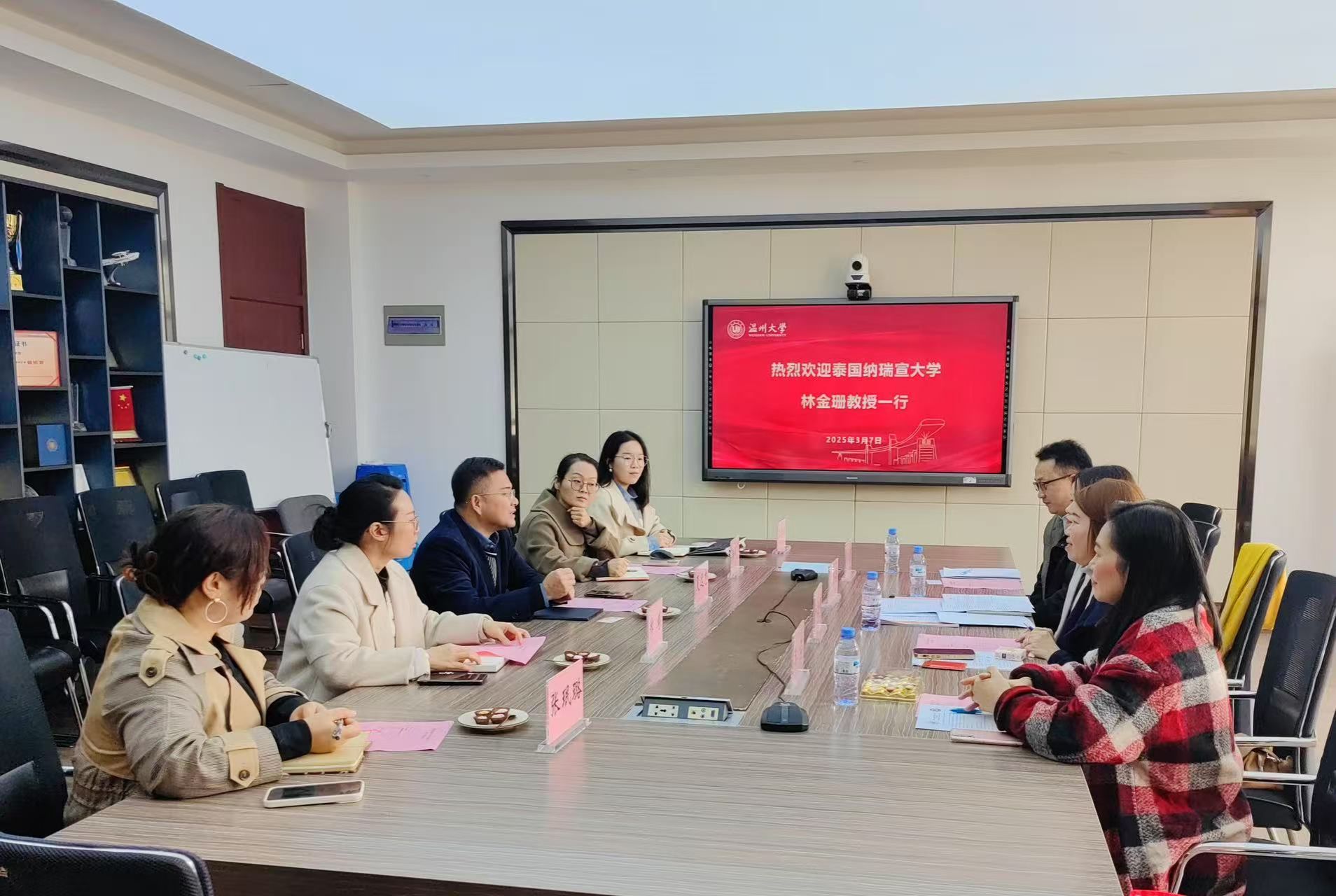 2025年3月7日上午,泰国纳瑞宣大学人文公司经理顾问林金珊一行莅临古天乐代言太阳集团138进行友好访问。双方就本科教育合作项目以及中泰教育交流进行了深入讨论。