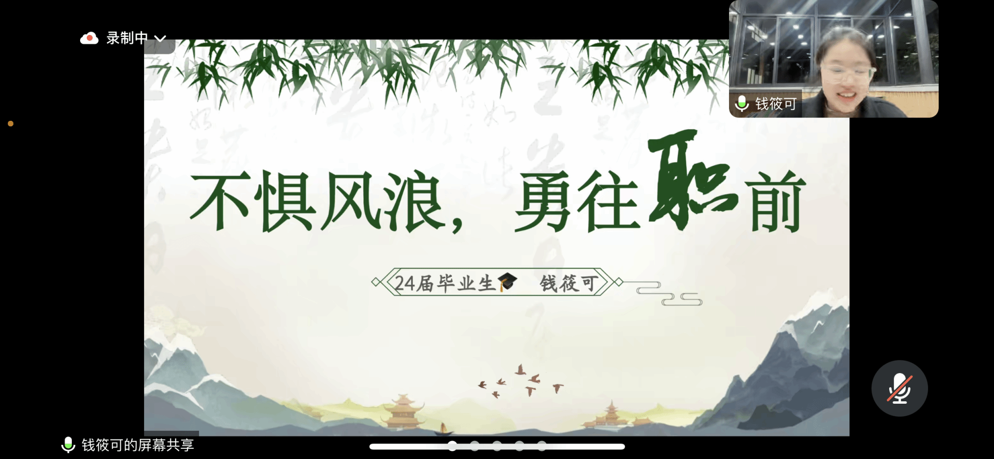 钱筱可介绍了求职考试前的注意事项。她提醒大家在求职前要了解报考公司的基本情况,明确岗位的考试形式、招聘要求和报录比,并进行针对性的备考。她分享了自己备考时如何进行自我评估,了解自身优缺点,并在考试中保持自信、沉着冷静的经验。此外,她还建议考前可以通过参加教学比赛等方式提升自己,积累经验。最后,她还强调了保持身体健康的重要性,并祝愿大家在求职过程中顺利。
