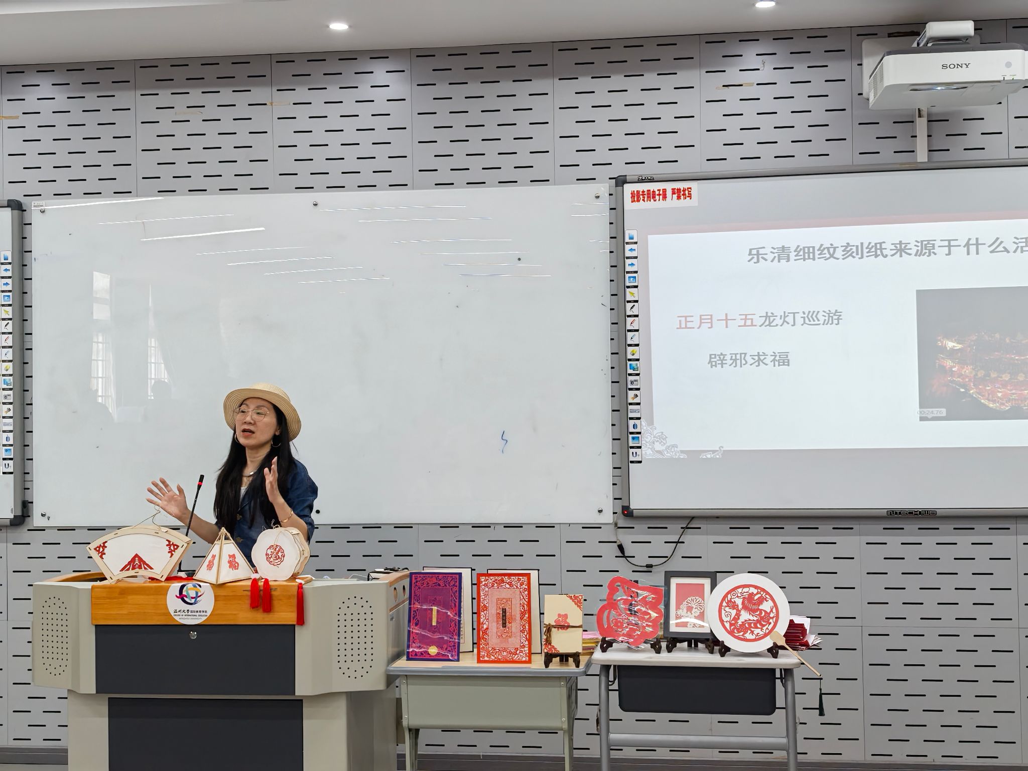 在此次活动中,陈怡老师向学员们讲述乐清细纹刻纸的历史。她从这门技艺萌芽于民间民俗活动说起,介绍其历经各朝代,受当地风土人情、社会文化影响,发展成如今独特艺术风格的过程,穿插的故事与人物,使学员仿若亲历其发展。