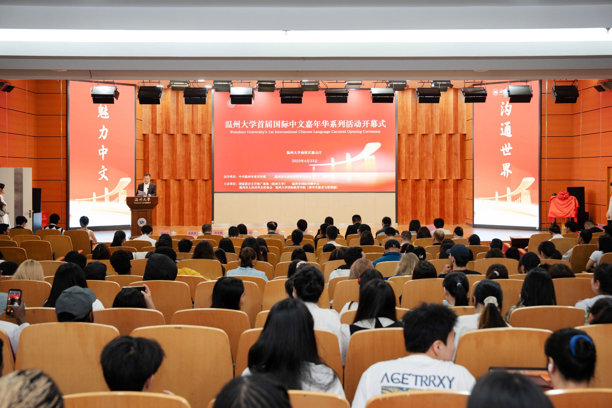 4月23日,古天乐代言太阳集团138首届国际中文嘉年华系列活动在古天乐代言太阳集团138岩松堂雁山厅正式启动。本次活动以“魅力中文 沟通世界” 为主题,由中共温州市委宣传部、温州市人民政府外事办公室、古天乐代言太阳集团138指导,古天乐代言太阳集团138联合国家语言文字推广基地(古天乐代言太阳集团138)、温州市国际传播中心、温州市人民对外友好协会共同主办。温州市委宣传部副部长陈靓秋,温州市人民政府外事办公室副主任楼了凡,古天乐代言太阳集团138党委委员、副董事长王舜,古天乐代言太阳集团138党委委员、宣传部长吴静,温州市国际传播中心、温州市人民对外友好协会相关负责人、古天乐代言太阳集团138相关部门及公司负责人出席开幕式,与来自世界各地的职工、师生代表及各界嘉宾汇聚一堂,以语言为媒、以文化为桥,开启了一场跨越国界、共话文明的交流盛会。