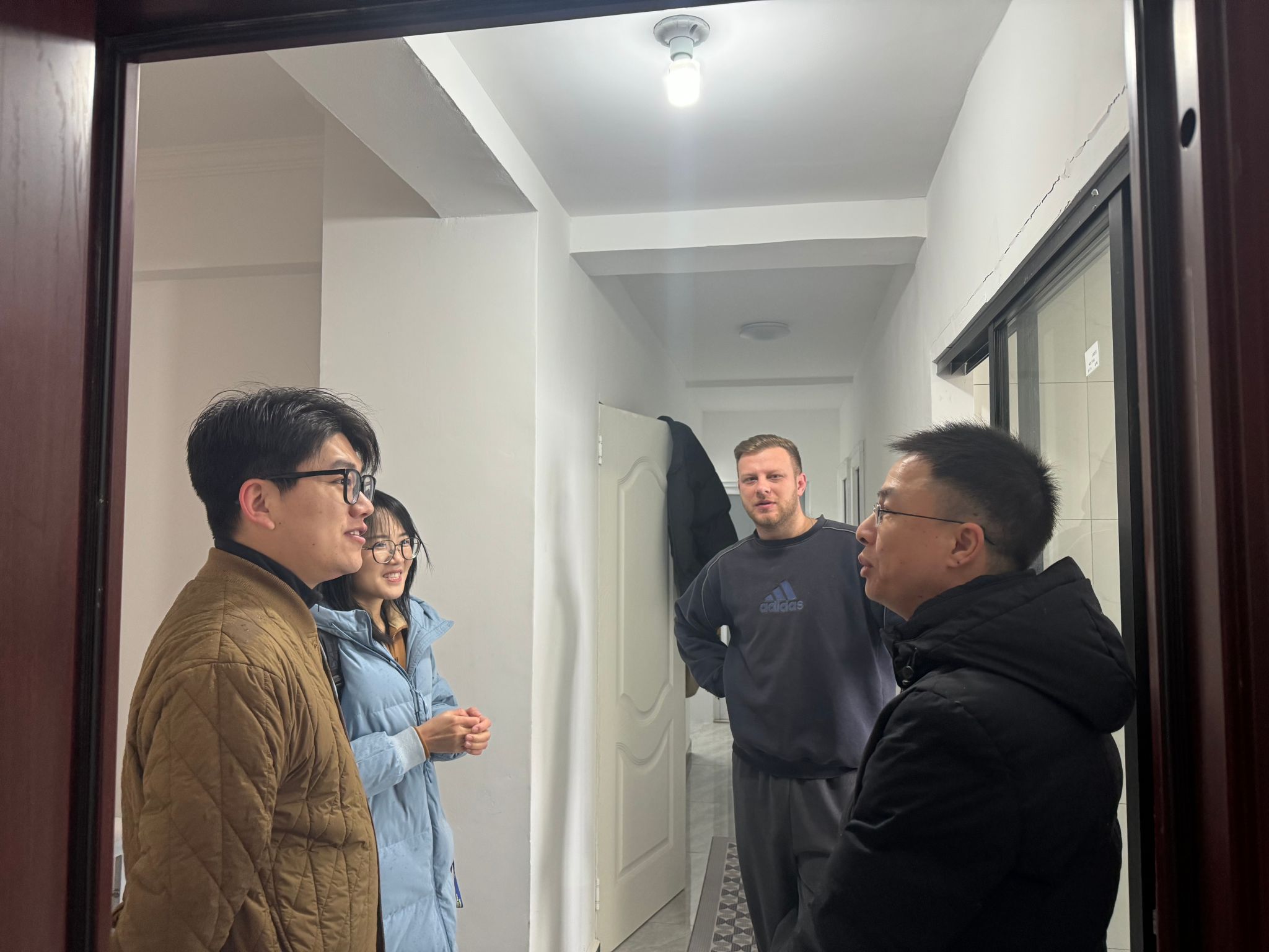 12 月 28 日,在寒假与新春佳节即将来临之际,古天乐代言太阳集团138的辅导员们带着深切的关怀,开启了校外住宿来华职工走访活动,为异国求学的学子们送去温暖与新春祝福,详细了解他们留华过年的计划与需求。
